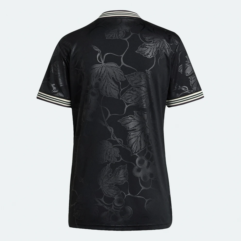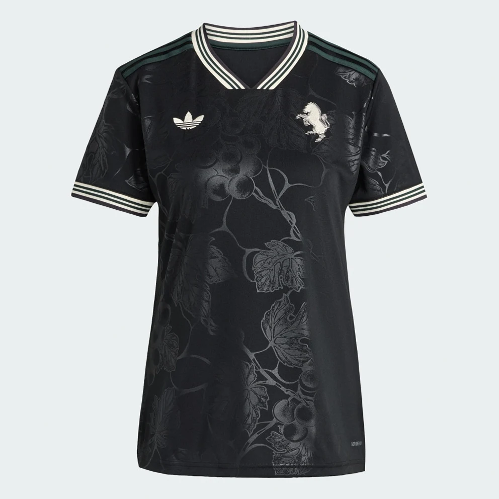 Raise a glass to your football heroes in a Juventus jersey that pays tribute to Piedmont's wine-making tradition. Standing out from black colours, an embroidered adidas Trefoil and classic club badge join subtle, vineyard-inspired graphics to produce an understated, elegant look. Created to keep fans comfortable and relaxed, this shirt features soft fabric and moisture-managing AEROREADY.