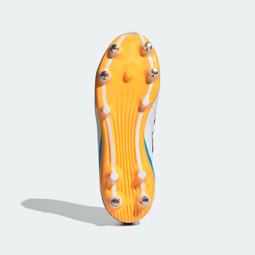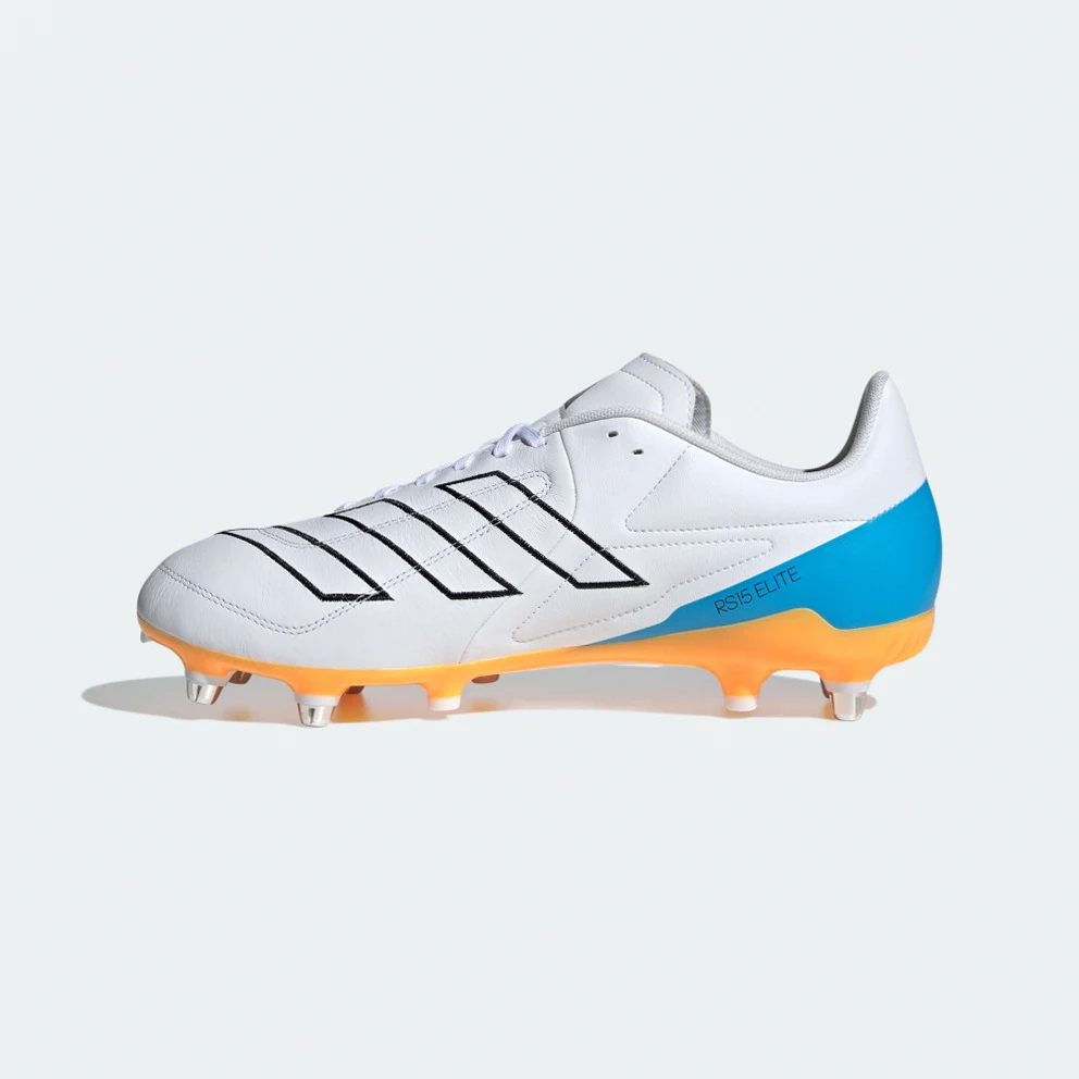 Rapid in every direction. As the game gets faster, players need to respond in a heartbeat. Built for soft ground, these adidas RS15 Elite rugby boots keep you locked in with an adaptive leather forefoot. Foam in the heel and padding on the collar line work together to cushion you during sudden bursts of acceleration. The off-centre lacing leaves a wide sweet spot on the forefoot for accurate, rugby-specific kicking.Made with a series of recycled materials, this upper features at least 50% recycled content. This product represents just one of adidas' solutions to help end plastic waste.