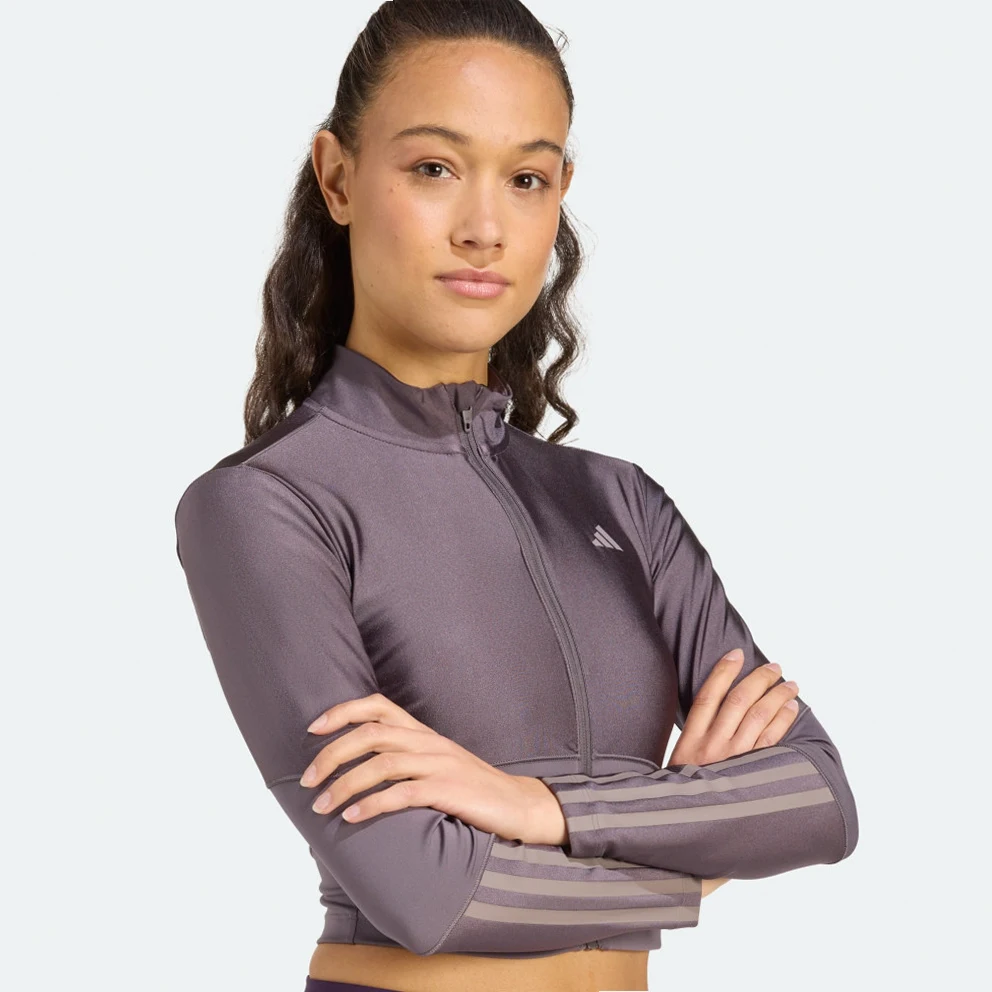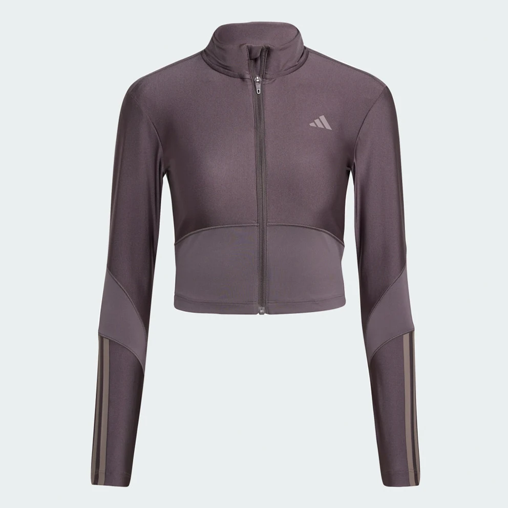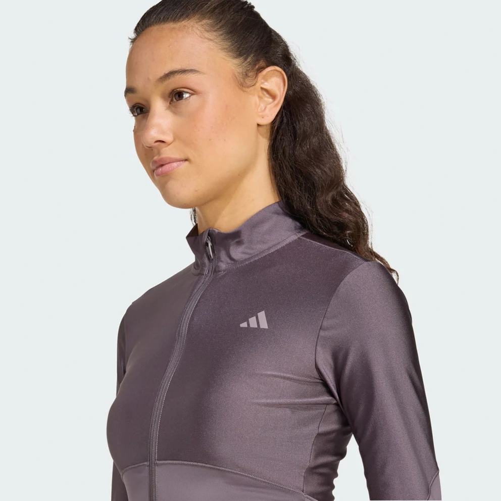 Shine bright at the gym and beyond in this adidas workout cover-up. This long-sleeve top mixes high-shine and matte fabrics for added dimension. Zip it up over workout gear or throw it on with jeans for an athleisure look. CLIMACOOL wicks and disperses sweat for cool, dry and distraction-free performance.CLIMACOOL helps you manage sweat with materials that wick and manage sweat quickly. Its fast-dry fibres give you a fresh-skin feel.