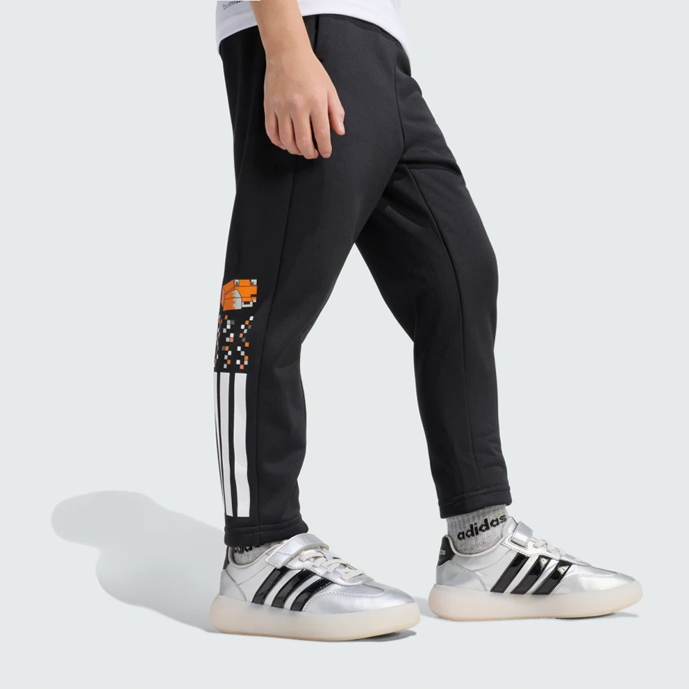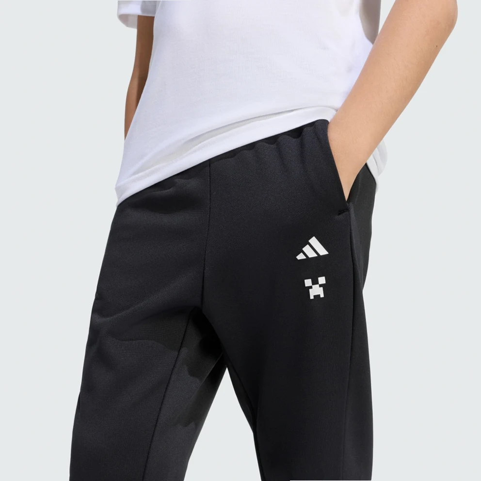 The adidas Minecraft Training 3 Stripes Pant is where the realms of digital adventure and real-world play come together.This collaboration brings the iconic world of Minecraft to life, capturing the essence of adventure while embracing adidas quality.Climawarm technology adds insulation and moisture management, offering a warm, dry feel for cooler active days and cosy lounging.The knit fabric provides a soft touch, for a comfortable feel that’s great for wearing throughout the day. The regular fit offers a sleek yet relaxed silhouette, making these trousers a great choice for easy, distraction-free movement.The elasticated waistband allows for a flexible and snug fit, while the iconic 3-Stripes branding gives a nod to timeless adidas heritage.Whether they're building in the virtual world or playing in the real one, let them express their creativity and imagination in these stylish and functional trousers.