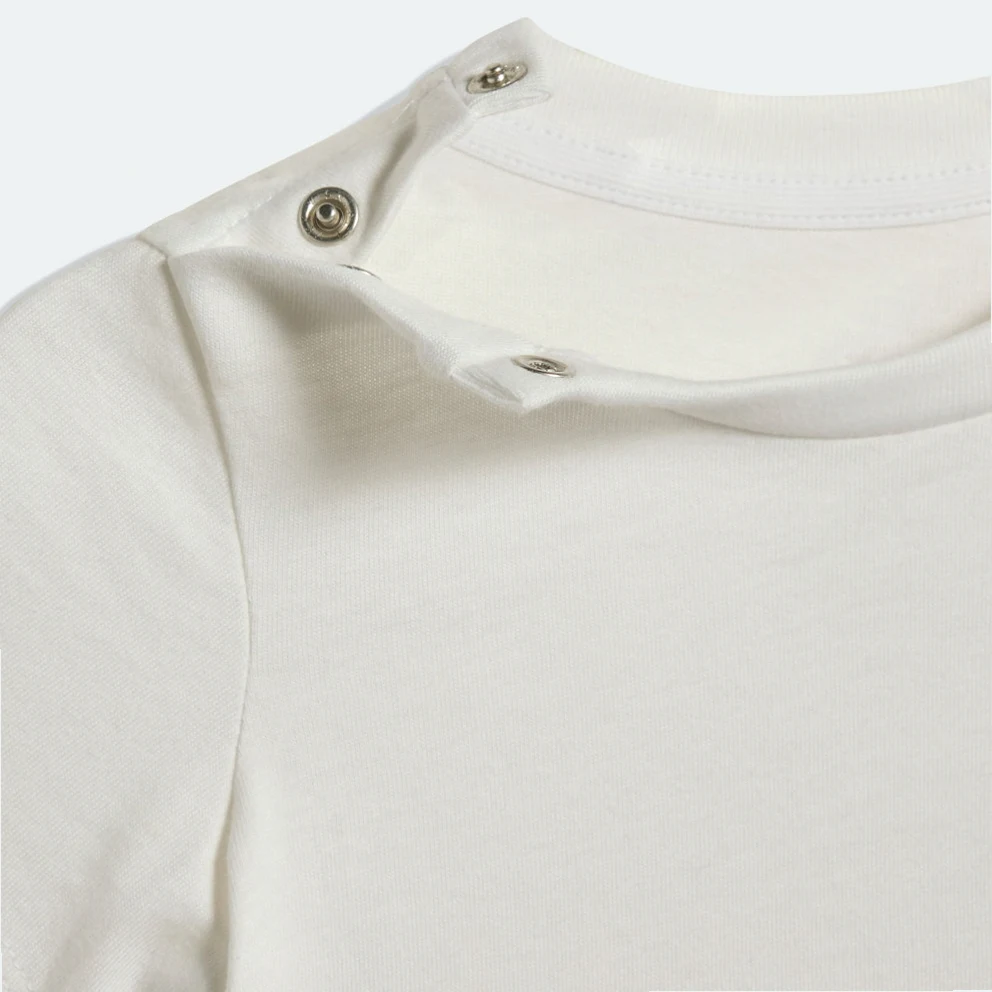 When adventure calls, comfort comes first. This infants' shorts and tee set is built in soft cotton single jersey and has a snap-button closure on the tee for easy on and off. An embroidered Trefoil logo on the chest and legs, plus ribbed details throughout, give your little one classic sport style.