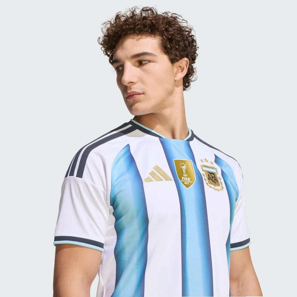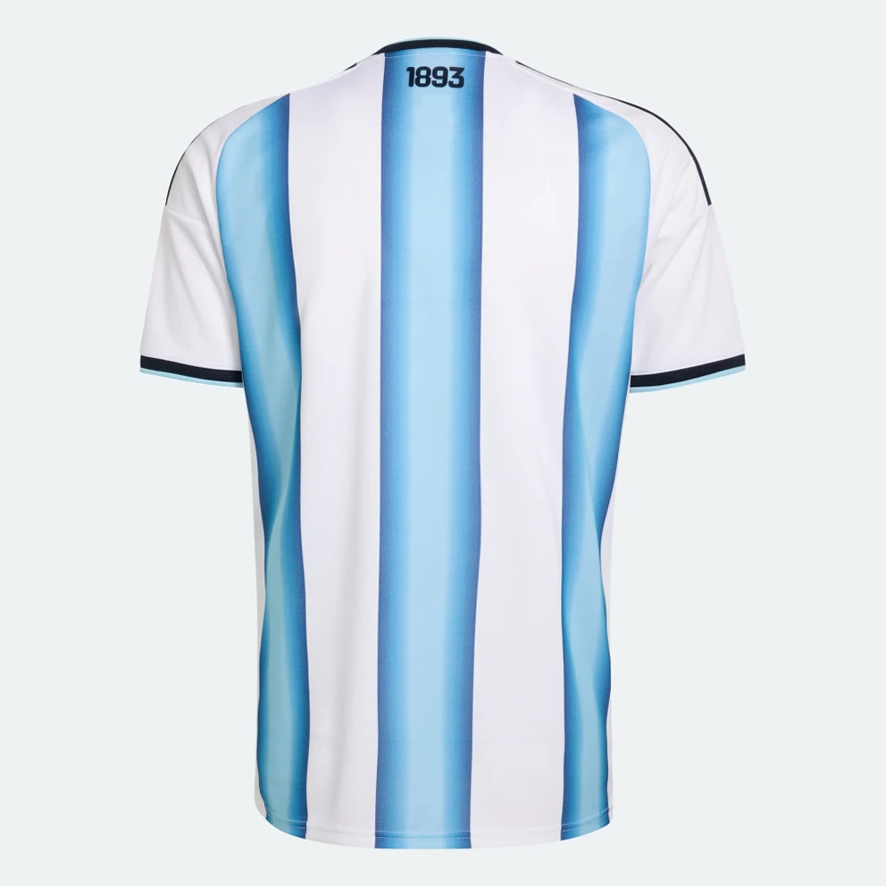 • it's a celebration of Argentina's football legacy. This kit is inspired by the jerseys worn during Argentina's three World Cup victories in '78, '86, and '22, and complemented by the federation's year of foundation as a proud sign-off. Cool. Dry. Ready. Climacool wicks and disperses sweat for a cool, dry and distraction free performance. The jersey's doubleknit construction offers durability and comfort, while its slim fit hugs the body, allowing for unrestricted movement on the pitch. Embrace the spirit of the world champions with this jersey.