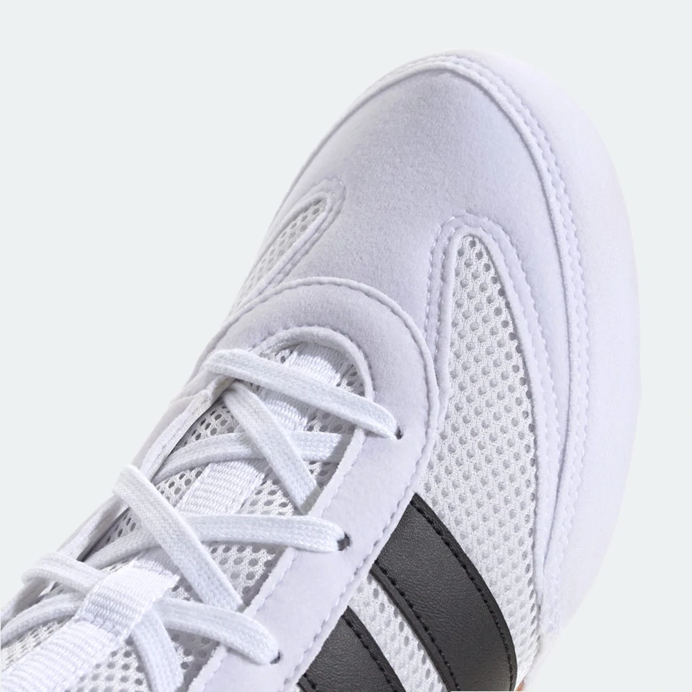 Introducing the Box Hog Classic Kids, a favourite in the boxing world, now designed for young boxing enthusiasts. Celebrated for its classic lines and simplicity, the proven model for adults has now been redesigned for the next generation of boxing stars. Crafted with a breathable mesh upper, these shoes offer support and moisture management, helping to keep little feet feeling comfortable during intense training sessions. The synthetic suede overlays in the forefoot add extra support, making each movement secure and stable. A die-cut midsole wedge offers a cushioned underfoot sensation, suitable for quick footwork drills. The multidirectional rubber outsole provides agility and responsiveness, helping kids to move swiftly and confidently in the ring. With fresh modern branding, these shoes are not just about performance but style too. They’re ready to go the distance and support your child through their training at the gym.