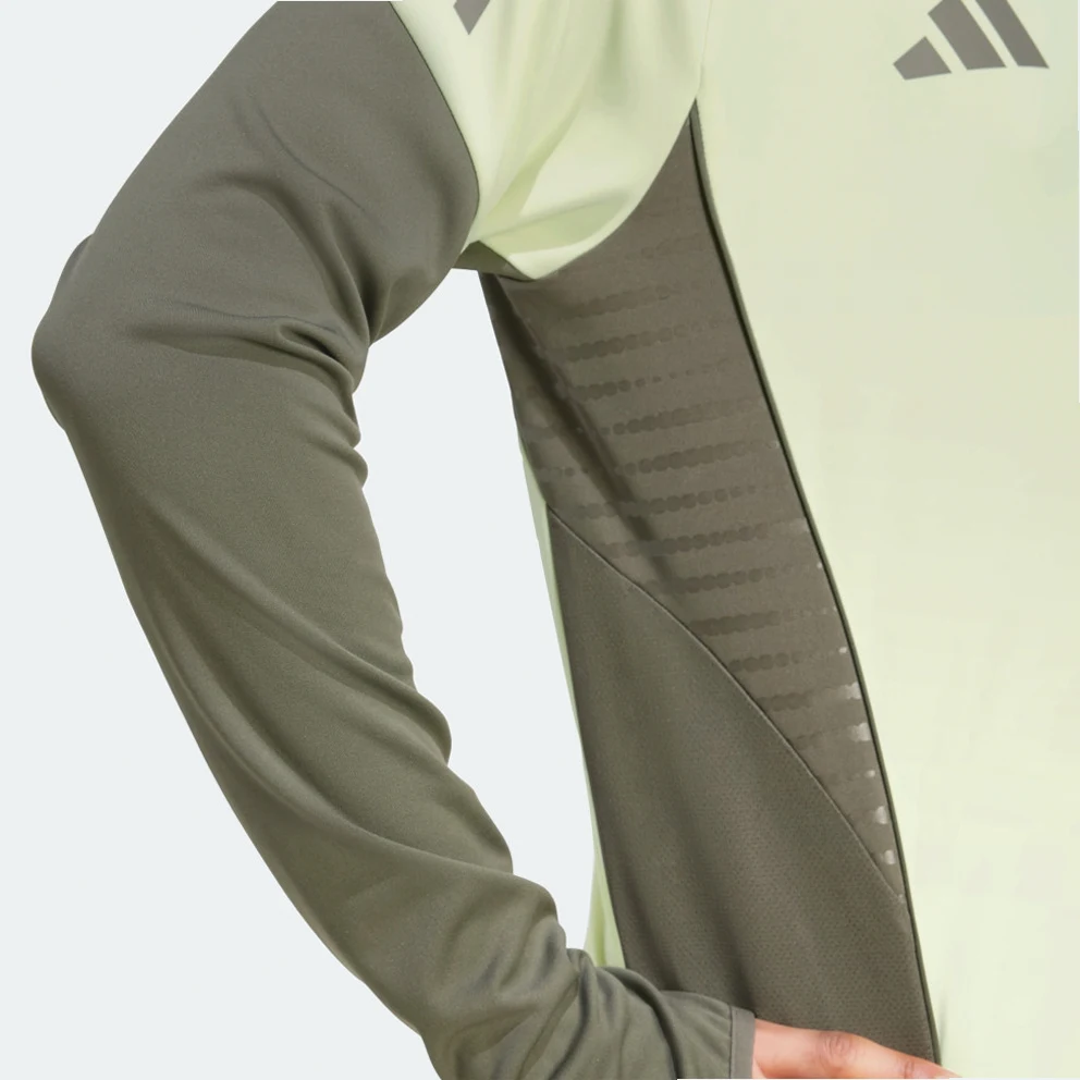 Bring your Real Madrid passion to the training ground. Part of the adidas kit the players wear before tackling league games, this football top offers slim-fitting coverage on chilly days. Moisture-managing AEROREADY works hard to keep you dry while your body warms up. A heat-applied club badge on the chest reminds you why you're out there.