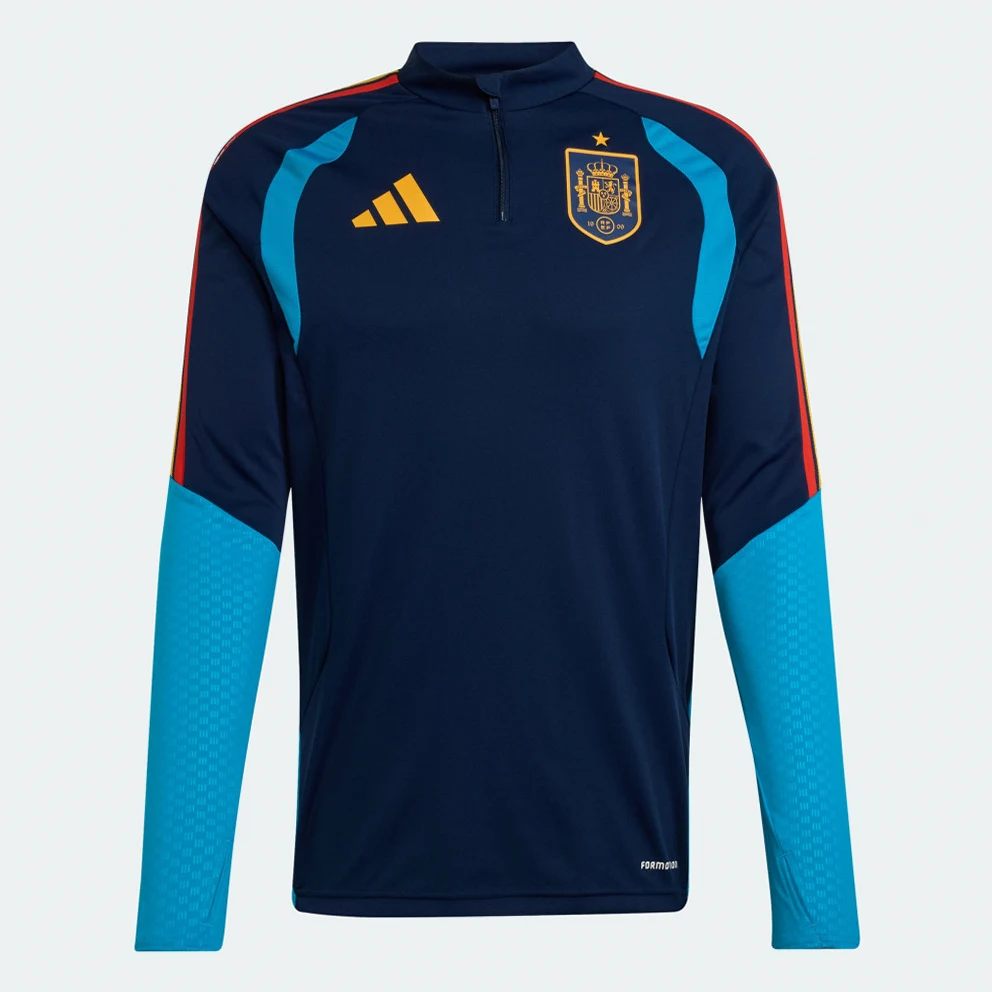 Step onto the pitch with confidence in the Spain 26 Tiro Training Top. Inspired by the elegance of Spanish football, this track top combines heritage with modern performance. Featuring adidas Formotion technology, the top is designed to free your movement. Innovative new cuts and three-dimensional engineering create sculpted garments that optimise fit and comfort.Made with mechanical stretch fabrics, this top offers a blend of performance, fit and comfort. Mesh chest inserts provide ventilation, helping to keep you cool as you train, while the slim fit helps to give a sleek silhouette.The embossed design elements on the arms and side inserts add a touch of style, and the front zip allows for easy on and off throughout a training session.Whether you're perfecting your skills or cheering from the sidelines, this adidas track top sets you up for excellence.