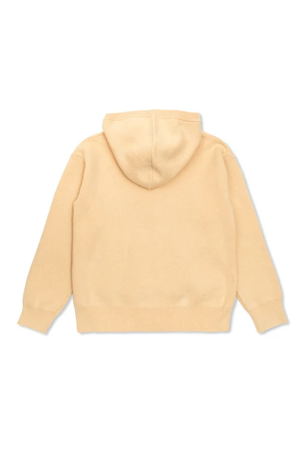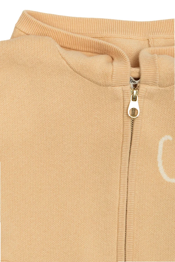 This distinguished Chloé Kids hooded sweater exemplifies refined elegance and unparalleled comfort for young girls. Expertly crafted from a sumptuously soft knit fabric, its timeless silhouette features long sleeves, ribbed cuffs, and a streamlined hem, presenting a polished yet relaxed appearance. The monochromatic composition is tastefully accented by a delicately embroidered Chloé logo on the chest, a signature of the designer’s understated luxury.