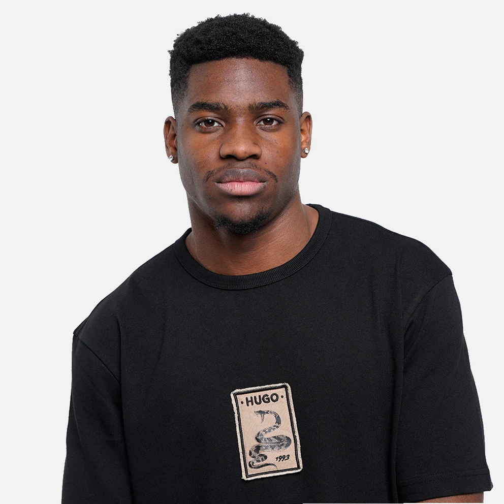 • Hugo Dobul T‑shirt featuring an embroidered biker‑inspired badge