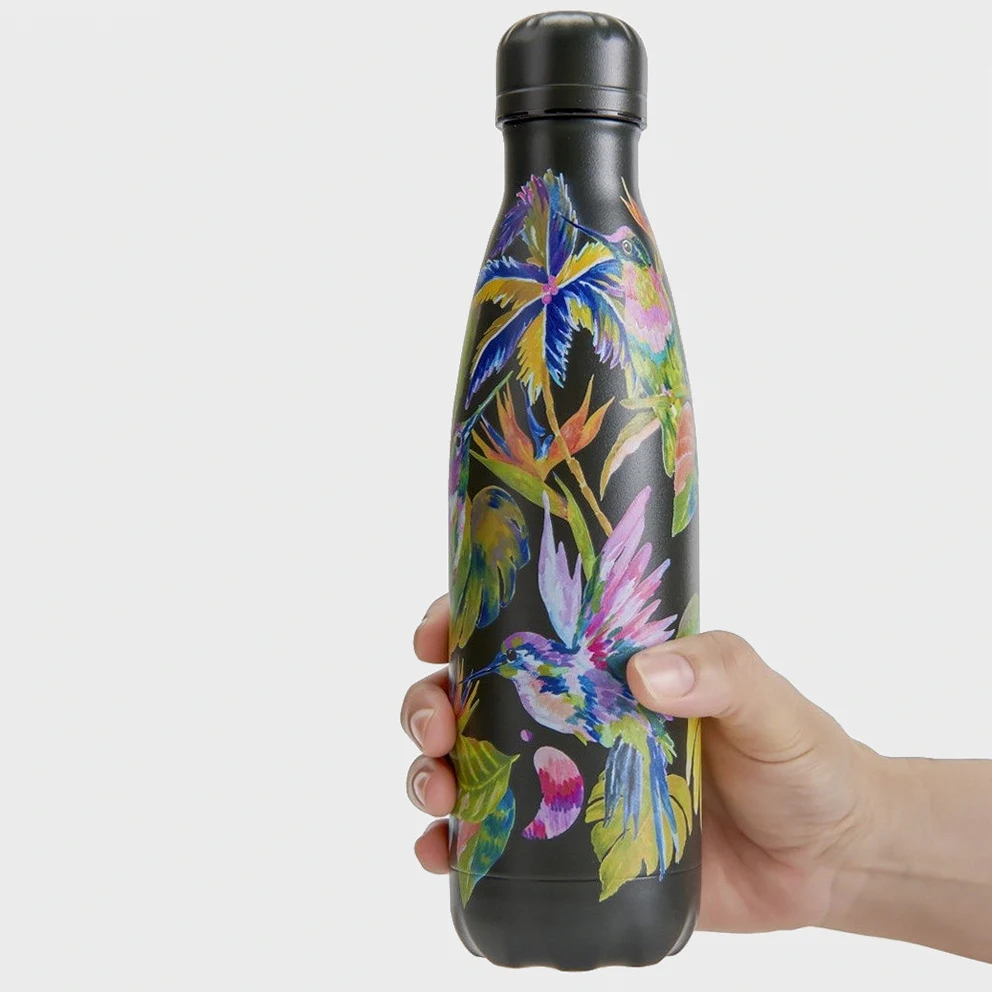 The Chilly's Tropical | Midnight Jungle 500ml Bottle combines amazing thermal insulation with an explosive, exotic design. The "Midnight Jungle" design offers a unique and dynamic look, while the double-walled thermal insulation technology ensures that your drinks remain at the ideal temperature for hours. Ideal for everyday use and outdoor adventures.