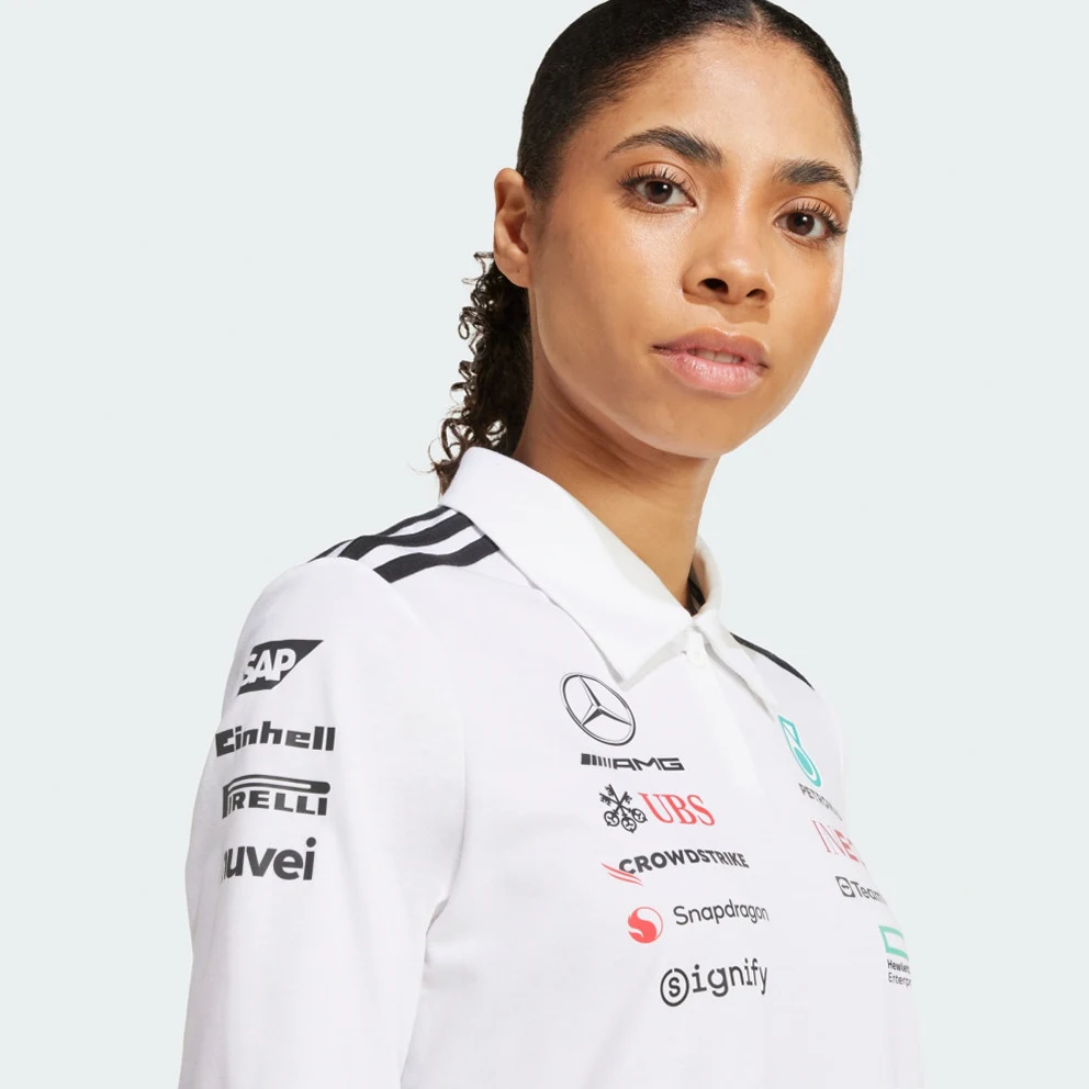 Step into the fast lane with this Mercedes - AMG Petronas Formula One Team polo shirt from adidas Motorsports. Designed to be like the ones worn by the team, this polo shirt features the official Mercedes - AMG Petronas Formula One Team logo and sponsor logos on the chest for an official look. The polo collar and side slits add an element of sophistication.This product is made with at least 70% recycled materials. By reusing materials that have already been created, adidas help to reduce waste and our reliance on finite resources and reduce the footprint of the products adidas make.