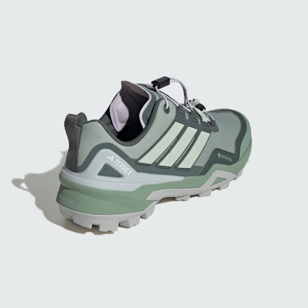Designed for hikes and rugged summit scrambles, these adidas Terrex Skychaser hiking shoes balance protection, control and comfort for moving fast on and off the trail. They combine the agile, responsive feel of trail running shoes with the support and durability of hiking shoes. Step-in comfort and a lightweight feel keep you focused on the trail ahead. A waterproof GORE-TEX EPE membrane seals out wet conditions while letting your feet breathe and regulate temperature. A ripstop upper with abrasion-resistant overlays keeps them light and durable. The all-conditions grip of Continental™ Rubber maintains traction across all surfaces, wet or dry. The ultralight Lightstrike cushioning allows for responsive feel and agile footwork.By choosing recycled, adidas are able to reuse materials that have already been created, which helps to reduce waste. Renewable materials choices will help us to remove our reliance on finite resources. Our products made with a blend of recycled and renewable materials feature at least 20% total of these materials.