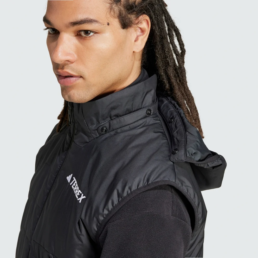 Hike. Explore. Travel. It's hard to beat the versatility of a vest for lightweight warmth. This adidas Terrex vest is the all-purpose adventure layer you can wear hiking and exploring or for added warmth at any time. CLIMAWARM traps heat and releases sweat for a warm, dry and focused performance. A detachable hood and side pockets add everyday utility.CLIMAWARM has insulating materials that trap warmth for optimal body temperature. Stay dry inside with sweat-wicking fibres that keep skin dry and comfy. Dial up warmth retention with first layer comfort to boost heat.This product is made with 100% recycled materials. By reusing materials that have already been created, adidas help to reduce waste and our reliance on finite resources and reduce the footprint of the products adidas make.