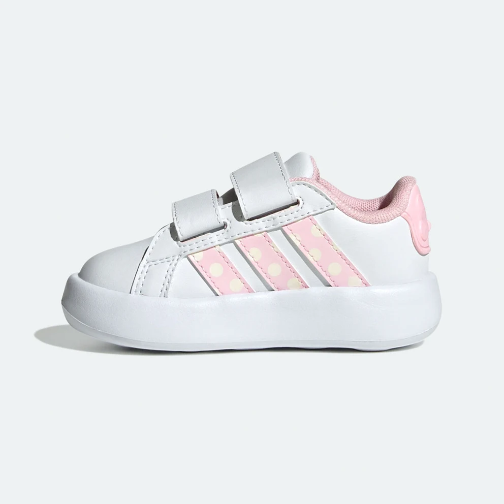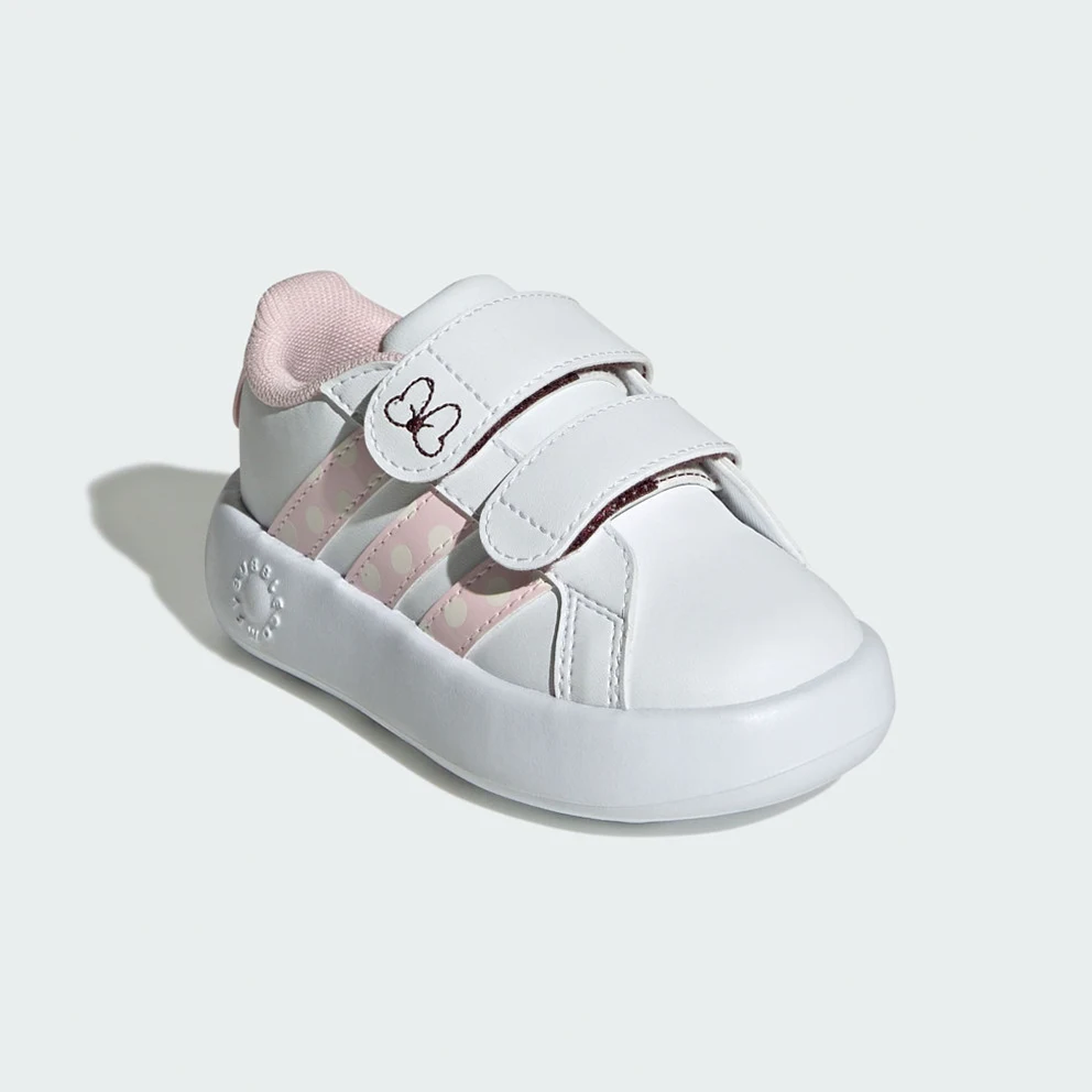 With a 3D Disney's Minnie Mouse bow on the heel, these infants' adidas shoes bring a playful vibe to any outfit. The smooth synthetic upper is extra durable for little ones on the go, and hook-and-loop straps make these shoes easy to slip on and off. A soft lining and outsole provide all-around comfort for tiny feet.