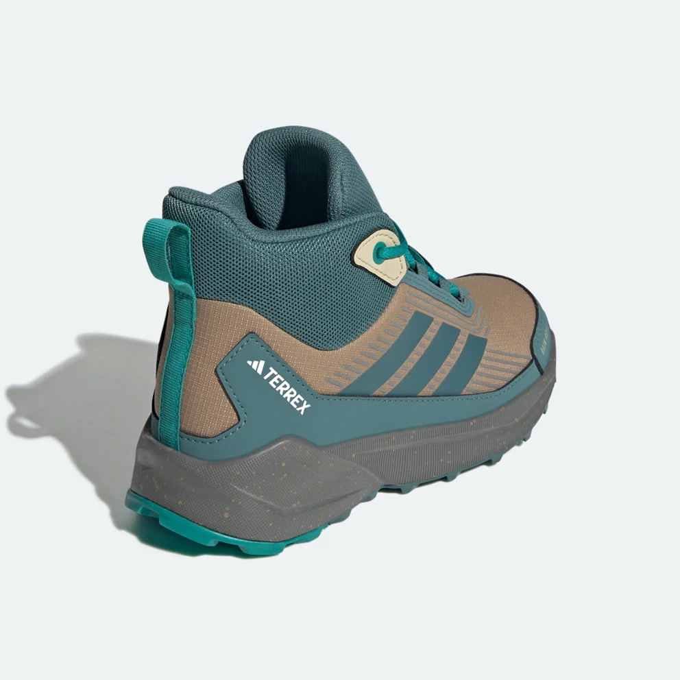 Rain or shine, these adidas Terrex Trailmaker 2 Hiking Shoes support adventurous kids with cushioned comfort and waterproof, breathable coverage. They combine the lightweight, cushioned feel of running shoes with the added stability of a mid-height upper and the traction of hiking shoes. The advanced waterproof RAIN.RDY upper keeps feet dry, and abrasion-resistant overlays add durability. Whether exploring trails or just playing outdoors, kids can hike and scramble with confidence in any terrain.By choosing recycled, adidas are able to reuse materials that have already been created, which helps to reduce waste. Renewable materials choices will help us to remove our reliance on finite resources. Our products made with a blend of recycled and renewable materials feature at least 20% total of these materials.