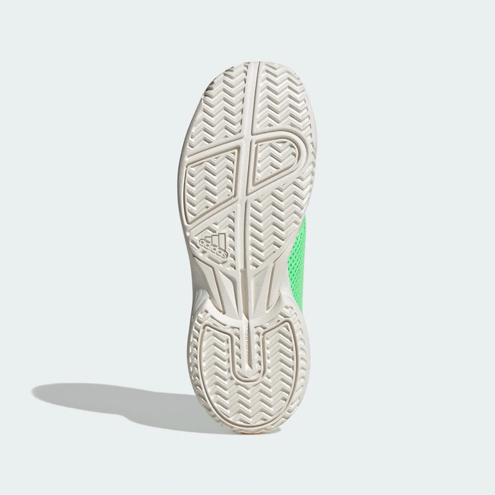 Tennis speedsters need lightweight, comfortable footwear that keeps up with their game. These kids' Courtflash shoes from adidas have a mesh upper for cool play and a durable Adiwear outsole that easily stands up to quick cuts and fast footwork. Whether your young athlete is learning the basics or already acing serves, these shoes will deliver the all-court performance they need.This product features at least 20% recycled materials. By reusing materials that have already been created, adidas help to reduce waste and our reliance on finite resources and reduce the footprint of the products adidas make.