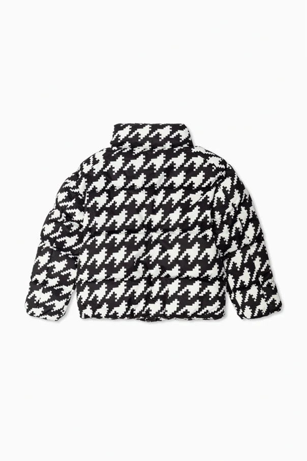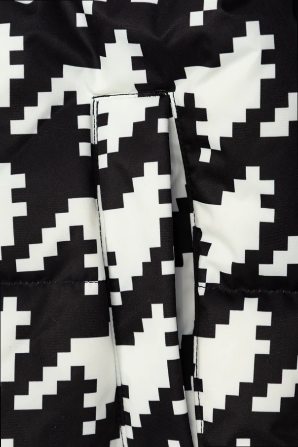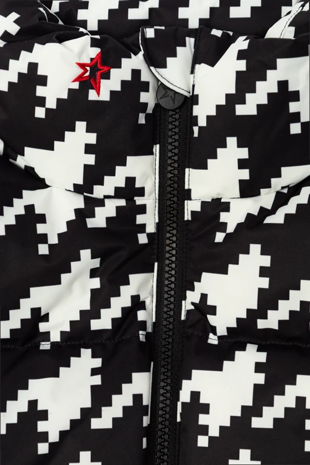 The Houndstooth Down Ski Jacket by Perfect Moment Kids is an exquisite fusion of sophistication and modernity. Enveloped in a striking, oversized houndstooth pattern, this jacket reimagines a timeless motif with pixelated, digital artistry in a monochrome black and white palette, delivering head-turning style on and off the slopes.