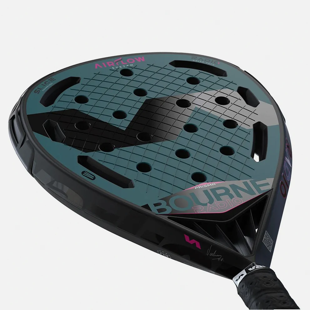 Choose the Varlion Maxima Summum Prisma Radio Racket for Padel and conquer the top. It is designed for advanced level players who usually play in temperatures below 25 degrees. This professional-grade padel racket features a Prisma frame, which reduces the point of contact of the frame with walls and surfaces by 90%, as well as 10% air resistance. All this translates into better racquet agility and greater acceleration ability when hitting shots.