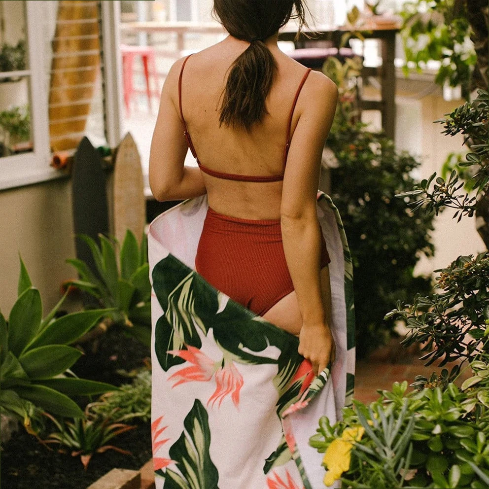 Make an impression on the beach with this beach towel from Slowtide. It has recycled cotton fabric that gives you a soft feeling and an all over print that impresses.