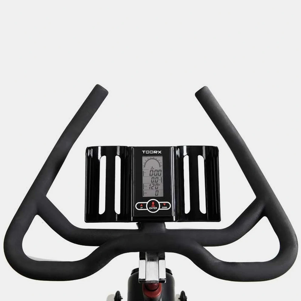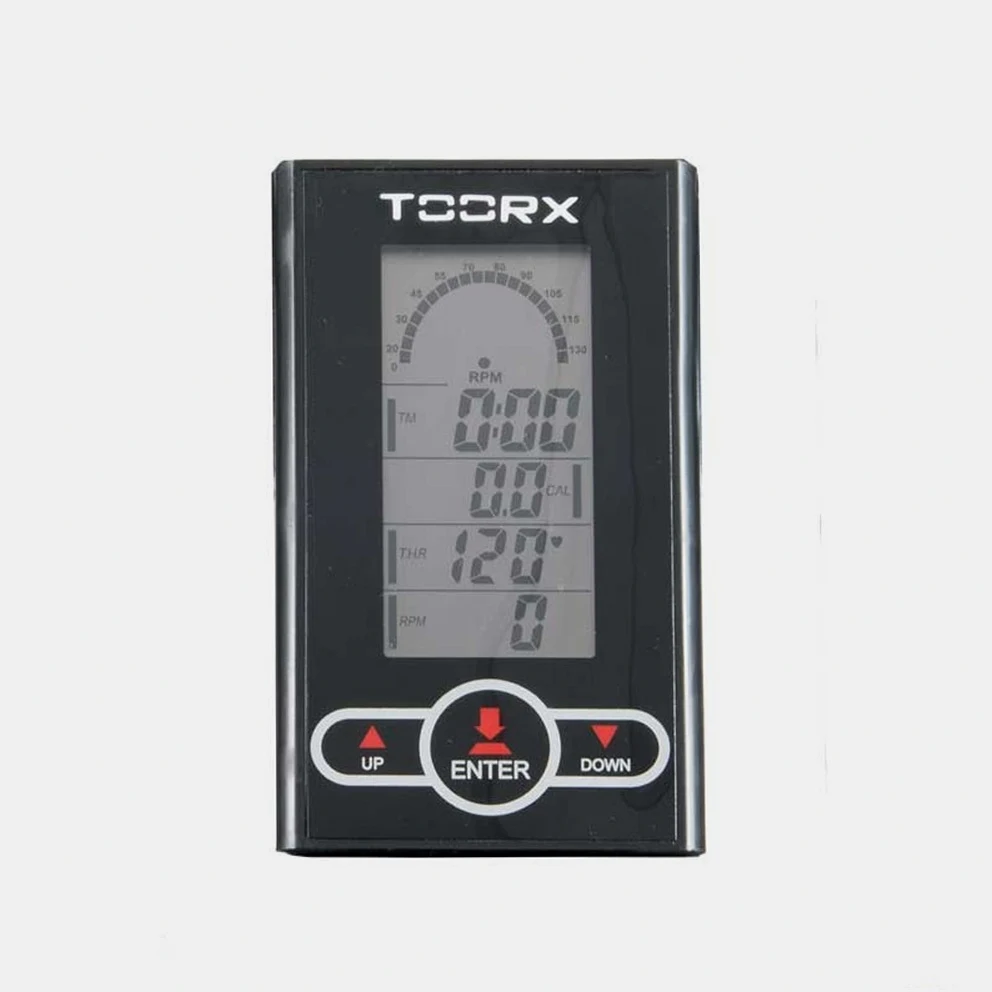 • Computer with LCD screen displaying: time, calories, speed, distance, RPM, and heart rate