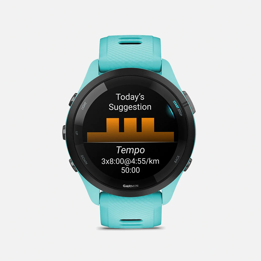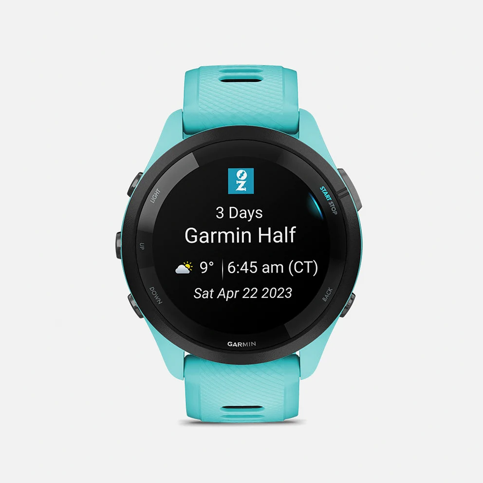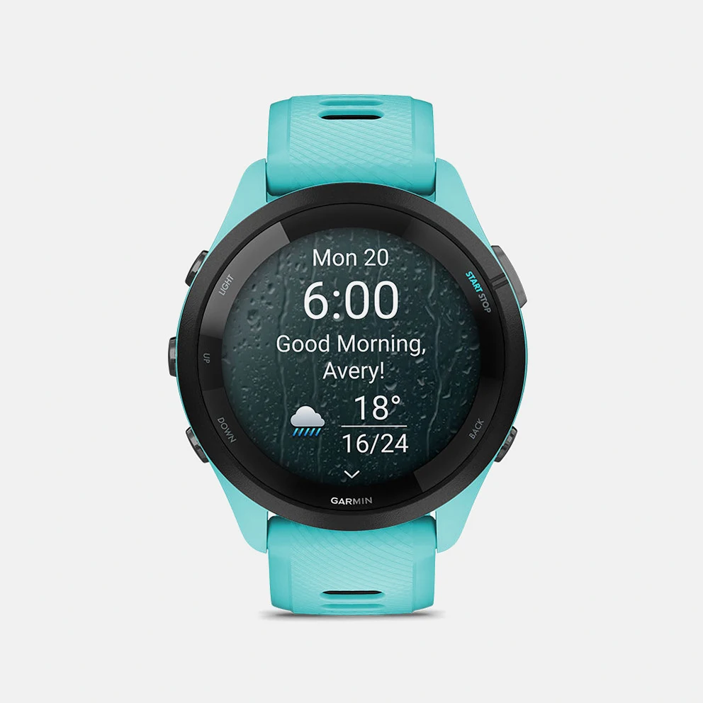 • Battery life: Up to 13 days in smartwatch mode and up to 20 hours in GPS mode with the Forerunner 265, or 15 days in smartwatch mode and up to 24 hours in GPS mode with the Forerunner 265s