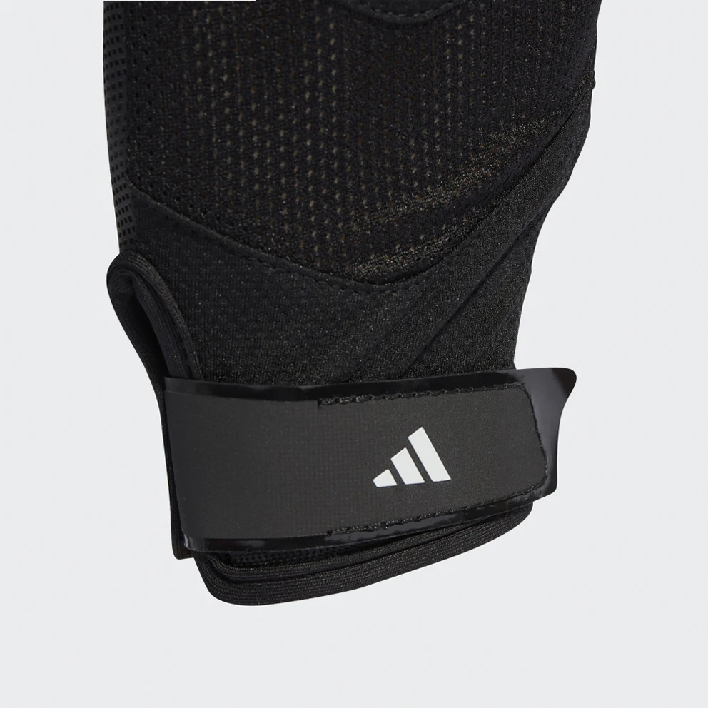These adidas training gloves take care of the details so you can focus on the weight you're moving. Made with a durable material, they can handle the rough-and-tough wear of your training sessions, from warmup to your final set. Hook-and-loop wrist closures secure a snug fit, and the anti-slip palm keeps a good grip on dumbbells, barbells and machine handles alike. Nose-wipe material on the thumbs gives you the detail you didn't know you needed, and mesh inserts on the back keep breathability high.