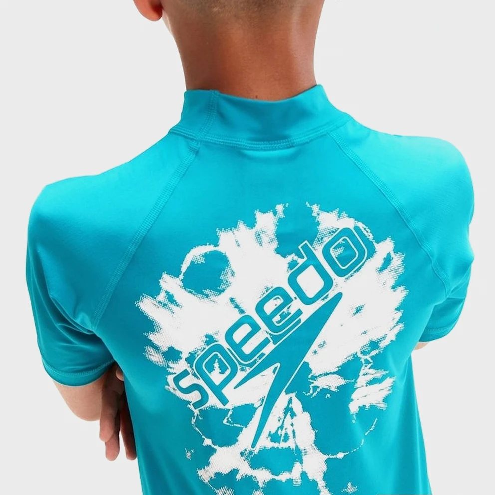 Help your little swimmer have a great summer with this stretchy UV t-shirt from Speedo. Protects his torso and shoulders from the sun's rays for safe enjoyment of water and sand games. Higher chlorine resistance than typical fabrics allows for long hours of use in the pool while its recycled polyester construction helps it become one with your body for unsurpassed comfort.
