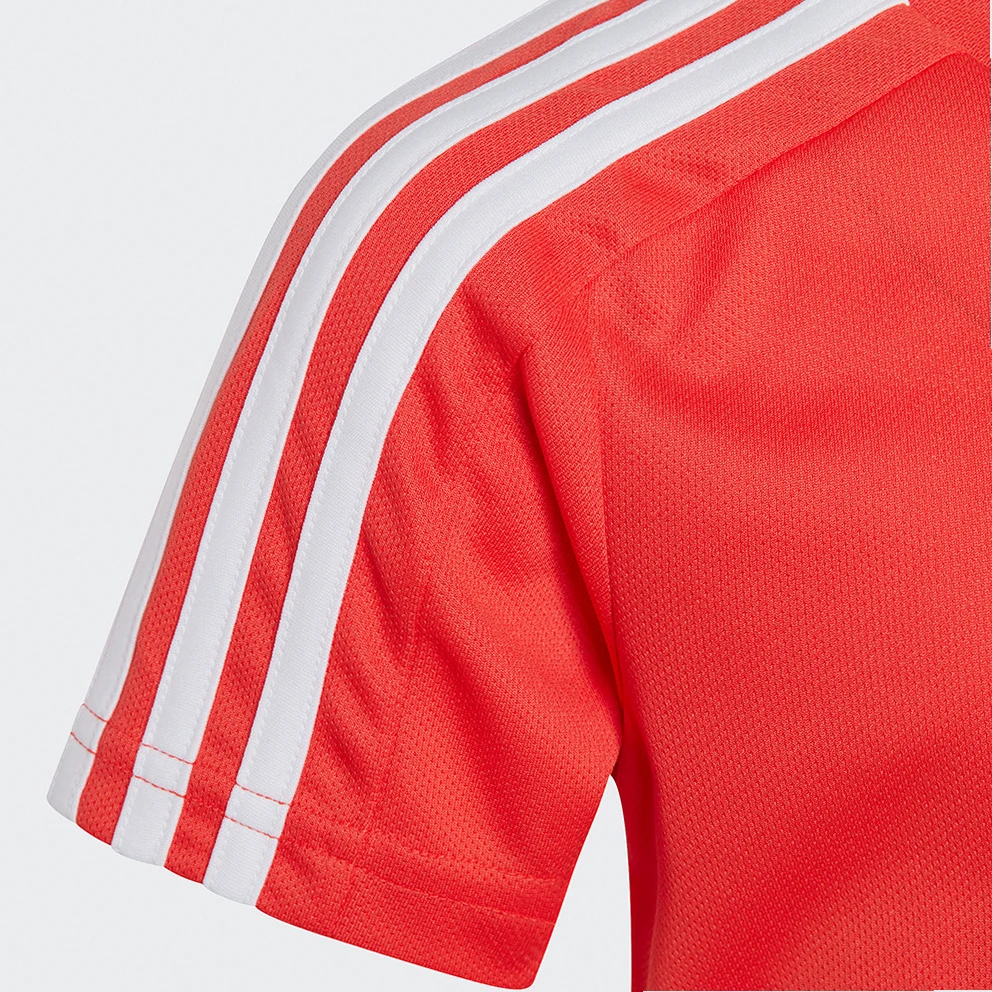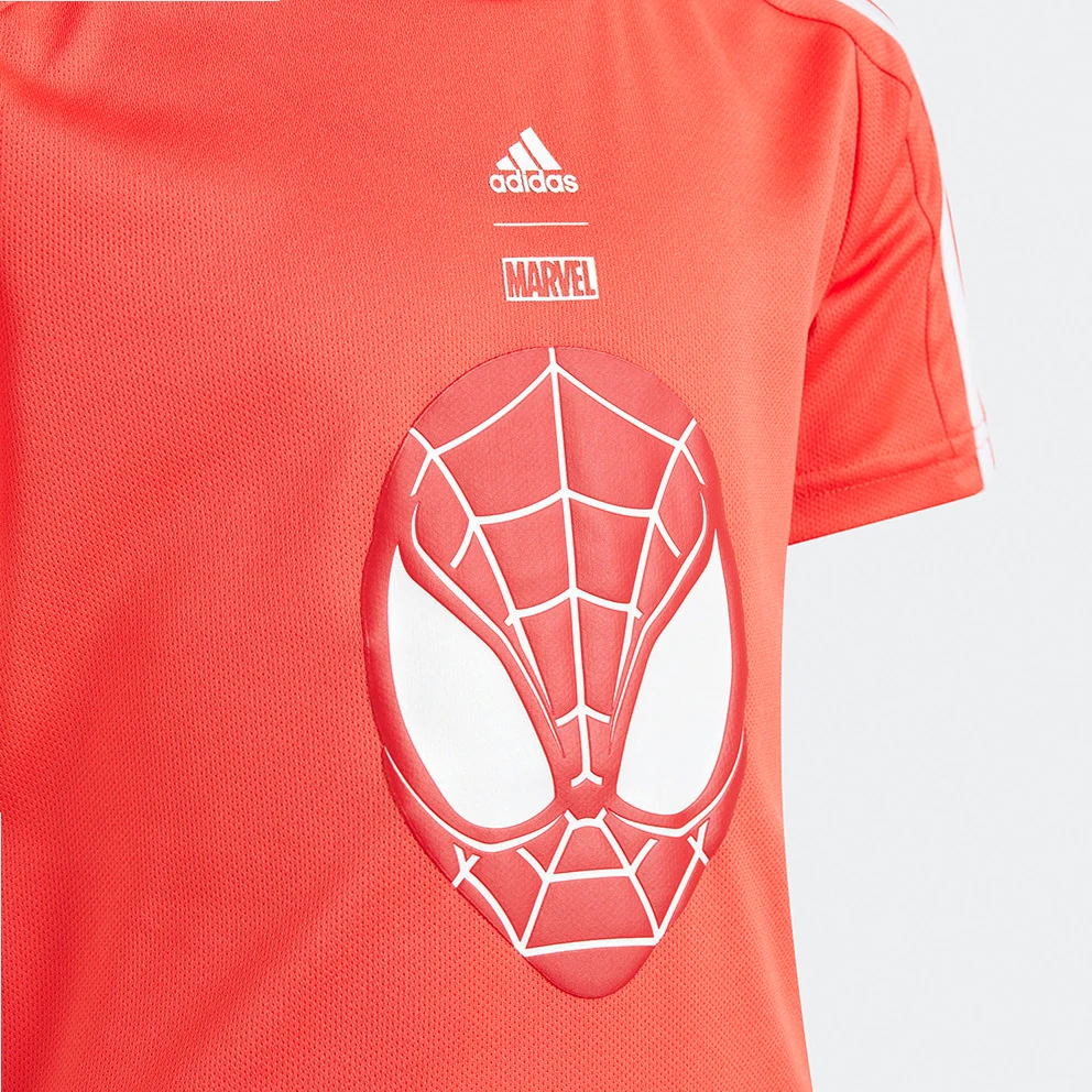 It's a good day to be a fan of Marvel's Spider-Man. This kids' adidas t-shirt has all the style and attitude of their favourite superhero. With signature 3-Stripes down the sleeves, it combines a football-inspired look with some change-the-world energy. Raised puff-print graphics bring everything to life.Made with 100% recycled materials, this product represents just one of adidas' solutions to help end plastic waste.