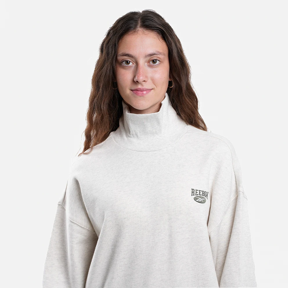 Feel warm and stand out for your unique athletic look wearing this Reebok Classics Archive Essentials Archive Fit Crew Women's Sweatshirt. It stands out from the rest of the sweatshirts in your collection thanks to its soft cotton texture in an oversized line with dropped shoulders and a high neck that provides warmth. Wear it with your favorite leggings but also with your leather pants for unique winter looks.