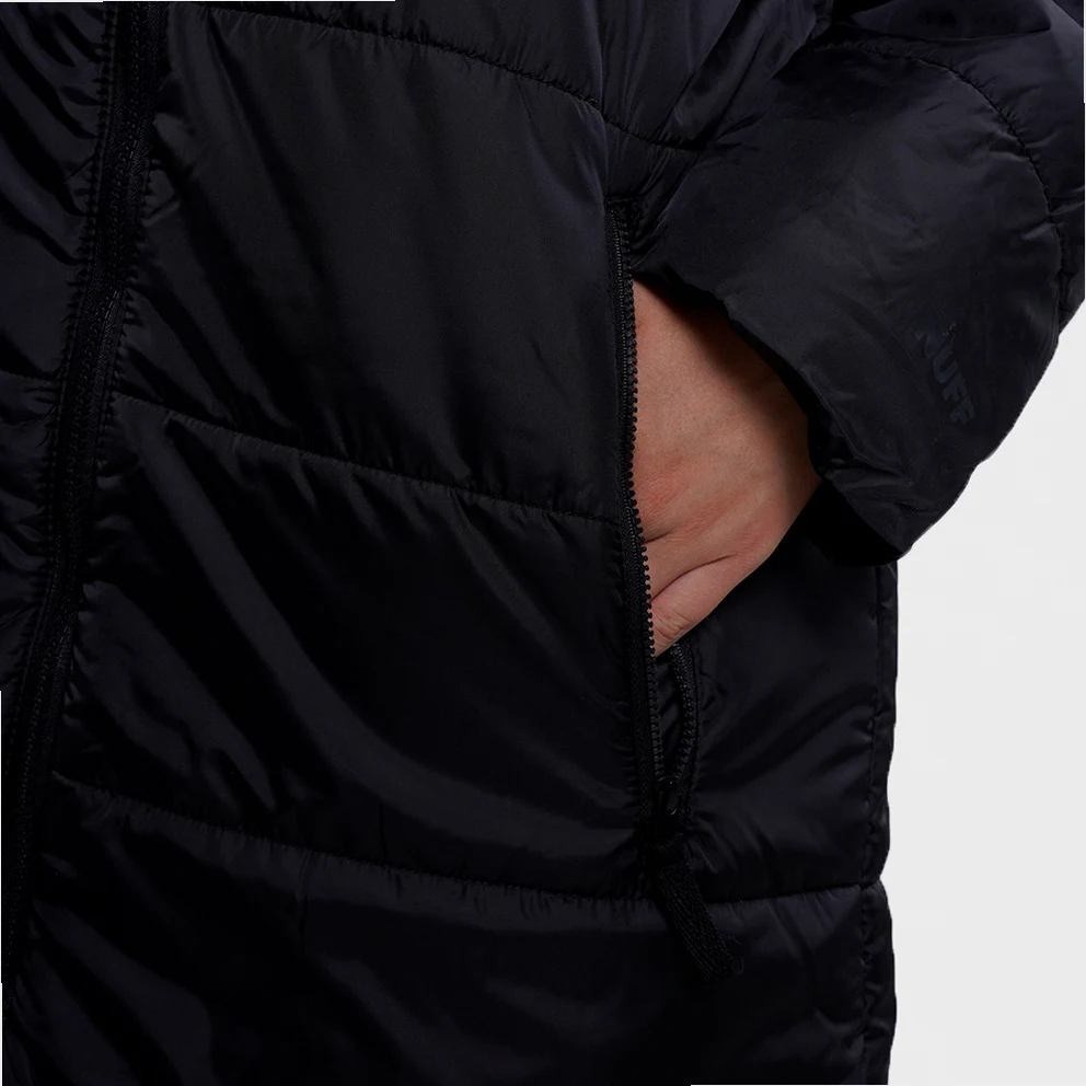 Add modern style to your everyday looks with this jacket from Nuff. This is a high-quality jacket which gives you a soft feel and lasting warmth. It is made of durable fabric with side pockets, mock neck and hood for extra protection from the weather!