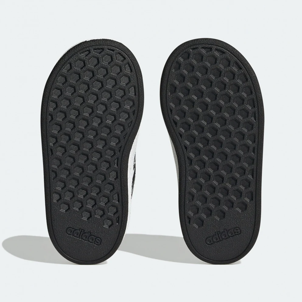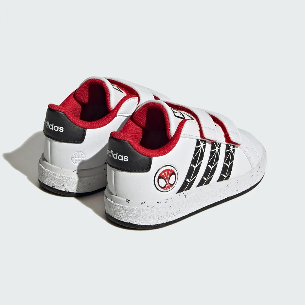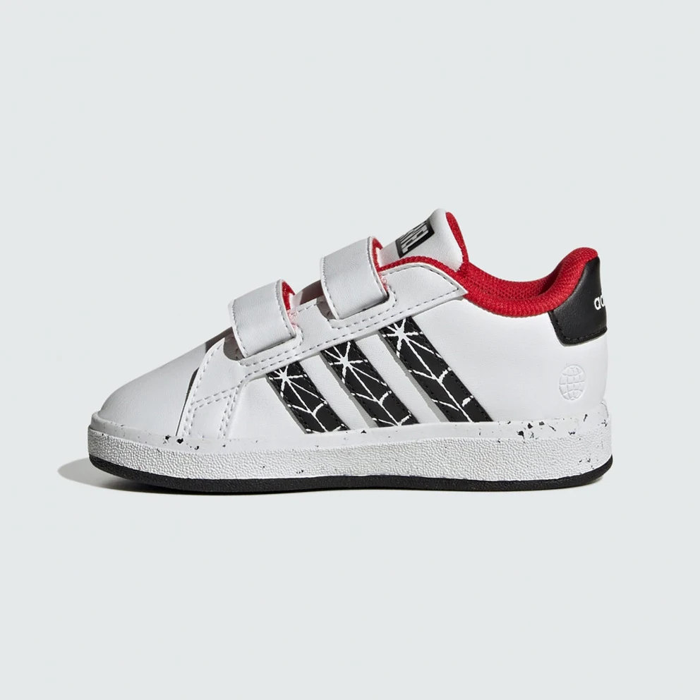 Whether they're on a mission to save the world or just scooting around the playground, these toddlers' adidas shoes will get them there in superhero style. They feature Marvel's Spider-Man graphics and a web print on 3-Stripes. Hook-and-loop straps make getting suited up for playtime a breeze. A soft upper keeps their little feet comfortable all day long.Made with a series of recycled materials, this upper features at least 50% recycled content. This product represents just one of adidas' solutions to help end plastic waste.