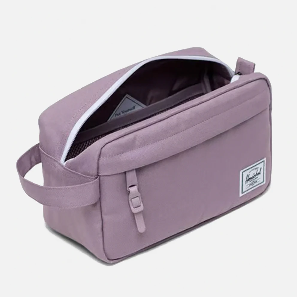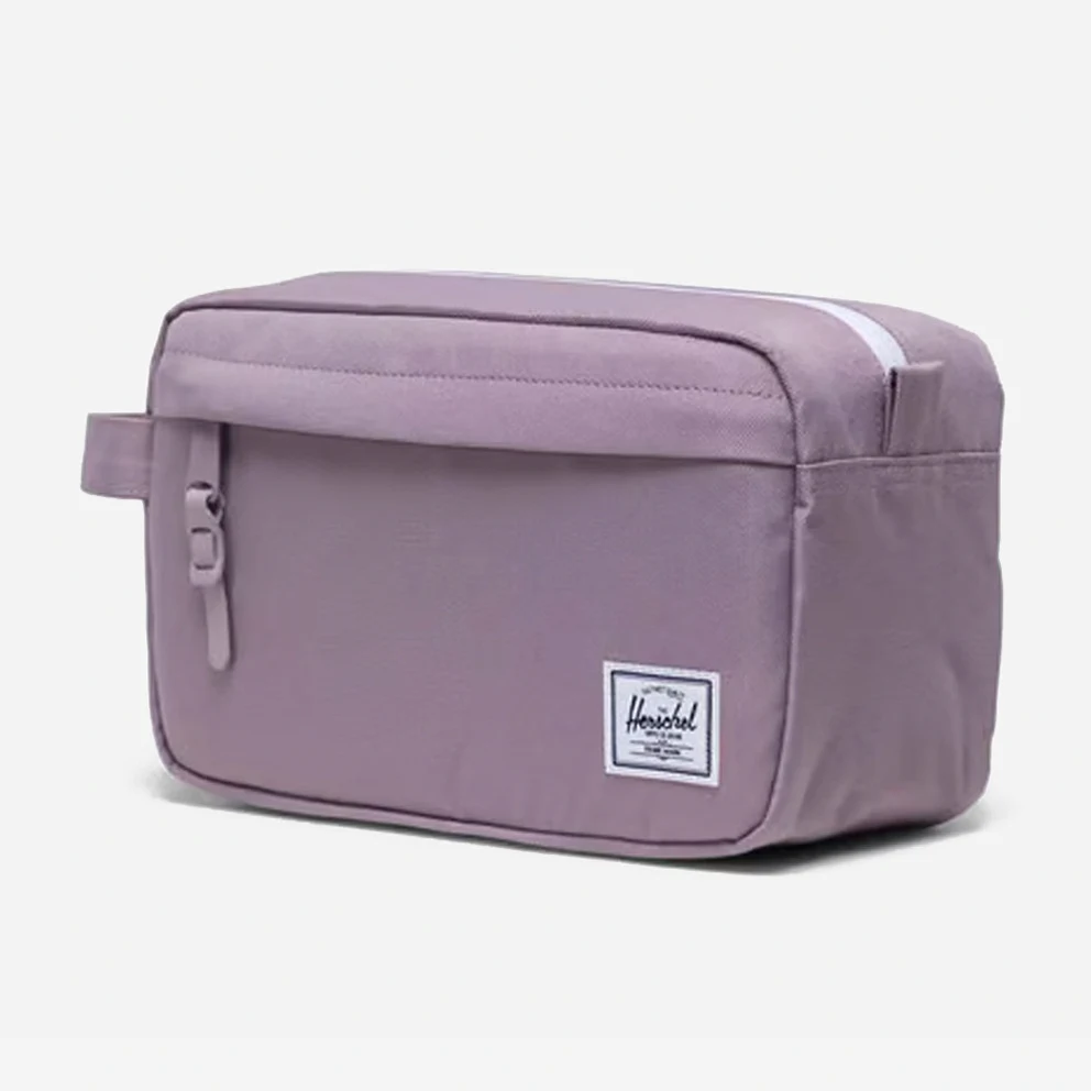 Large travel kits can store all your essentials and more. The travel kit from Herschel is made with recycled fabric to keep your everyday items dry. It has a zipper closure print on the front and side carrying handle.