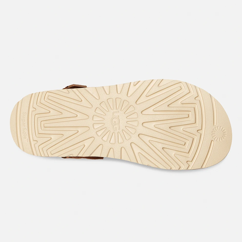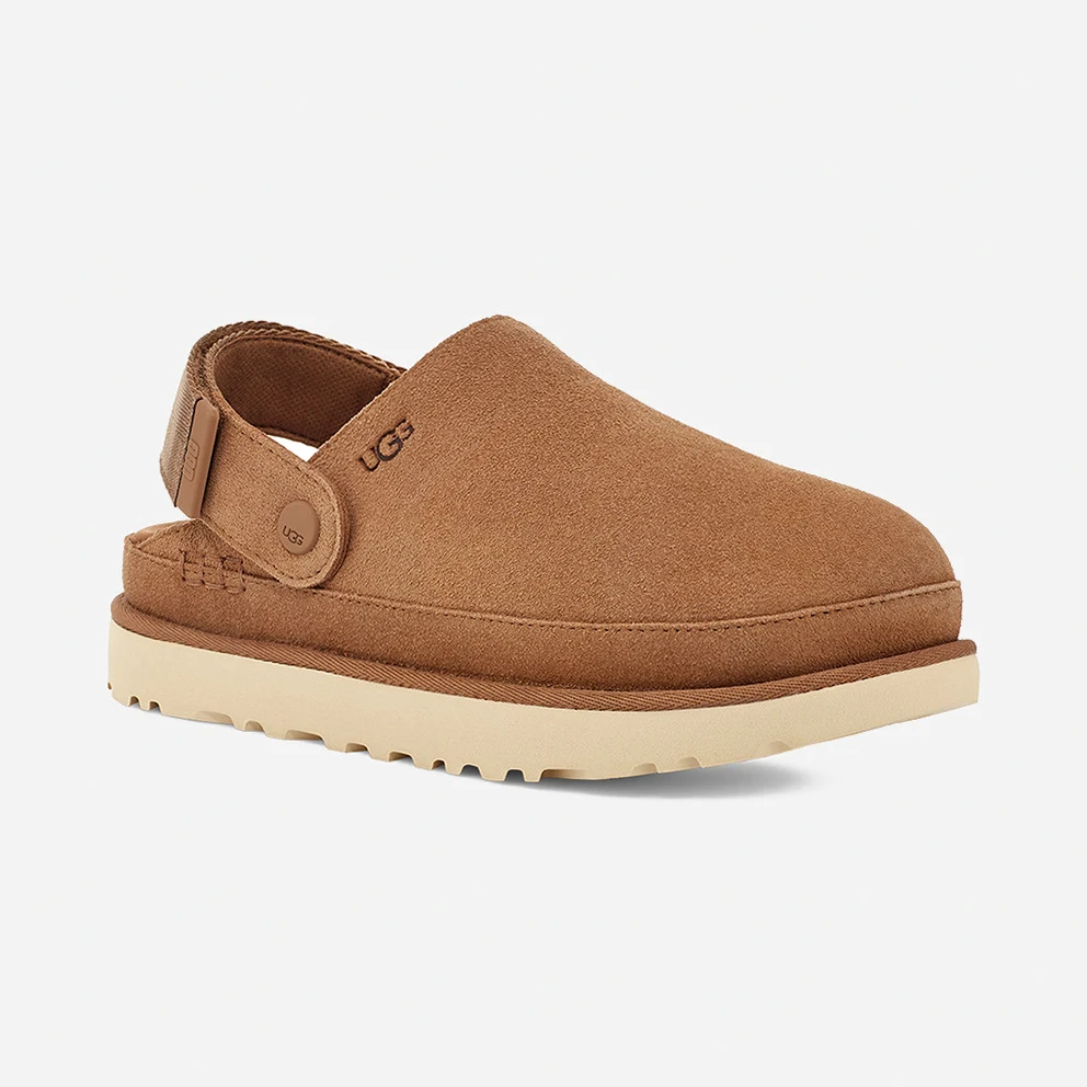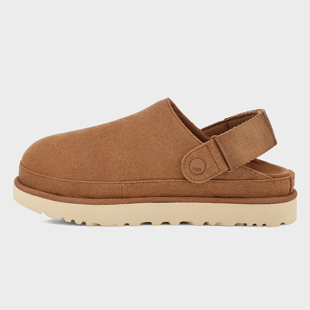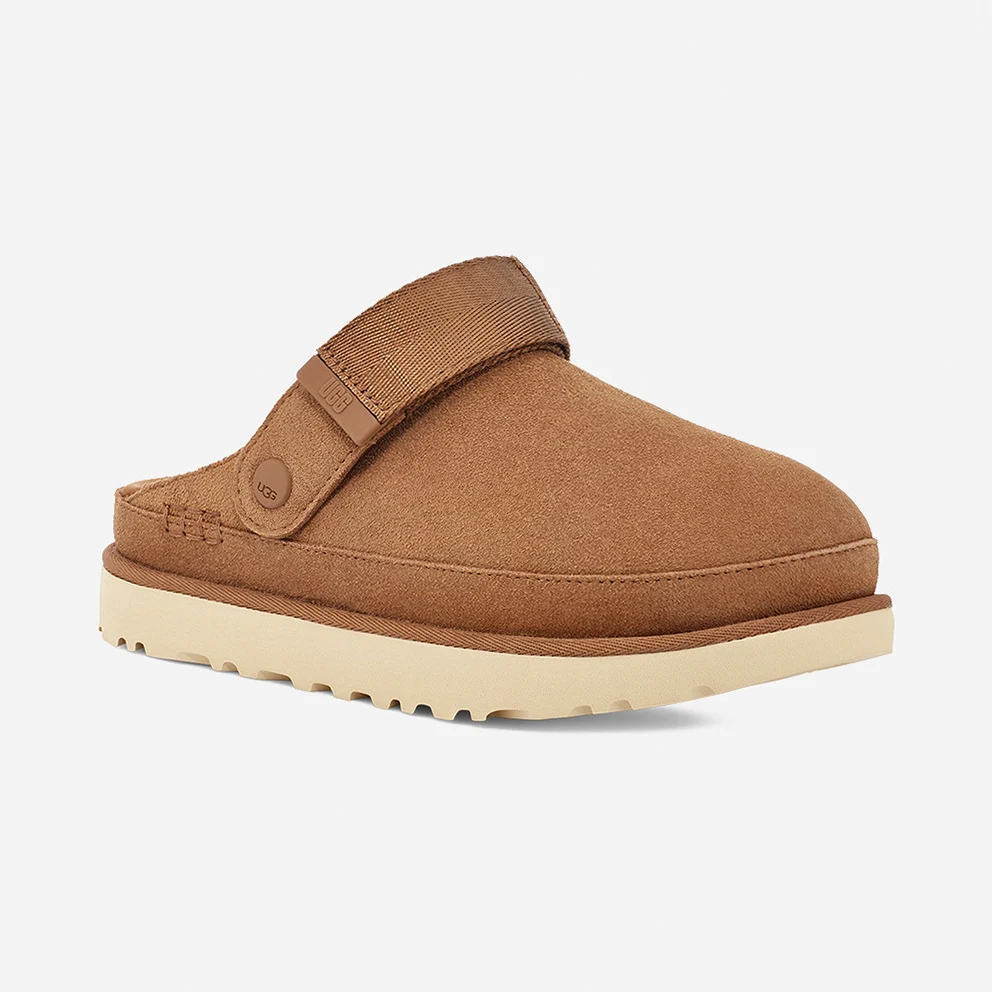 Who would say no to a shoe designed for outdoor space that doesn't take away the relaxed mood of relaxing moments indoors? These are the unique Ugg Goldenstars that are comfortable and soft for all day use in the city! Textile lining made from 100% recycled polyester fibers creates a warm and welcoming feeling on your feet, while an adjustable strap ensures stable steps. Sugarcane EVA midsole makes their step soft and flatform outsole gives height and allows outdoor use creating a statment cozy style. Who said slippers are only suitable for the home?