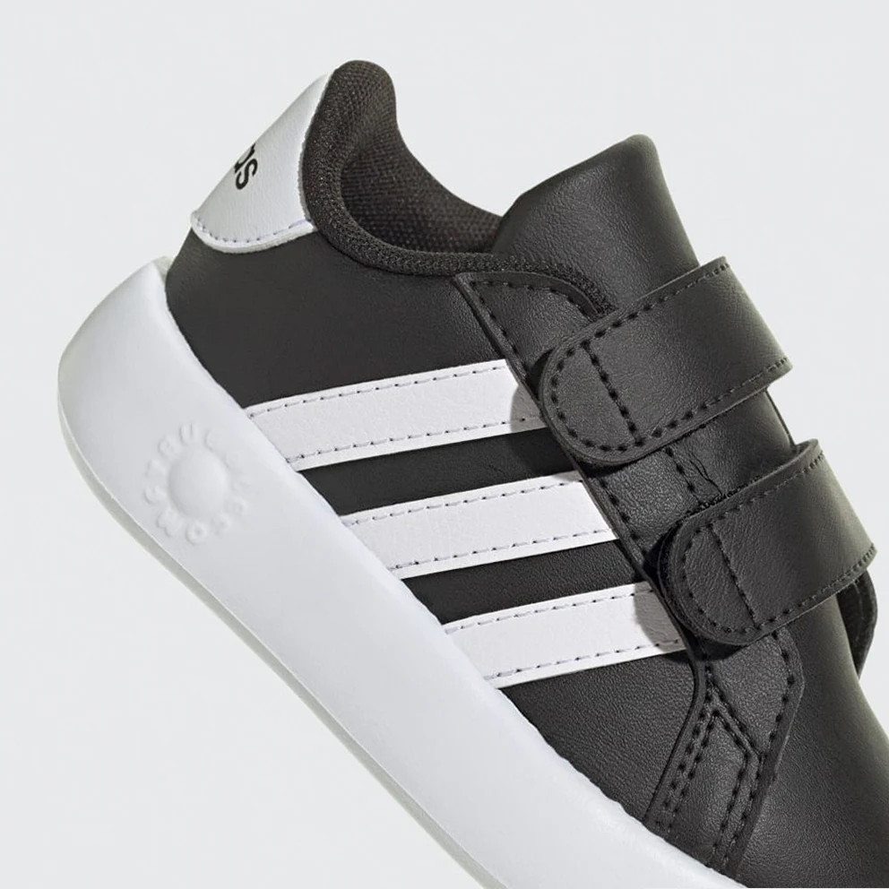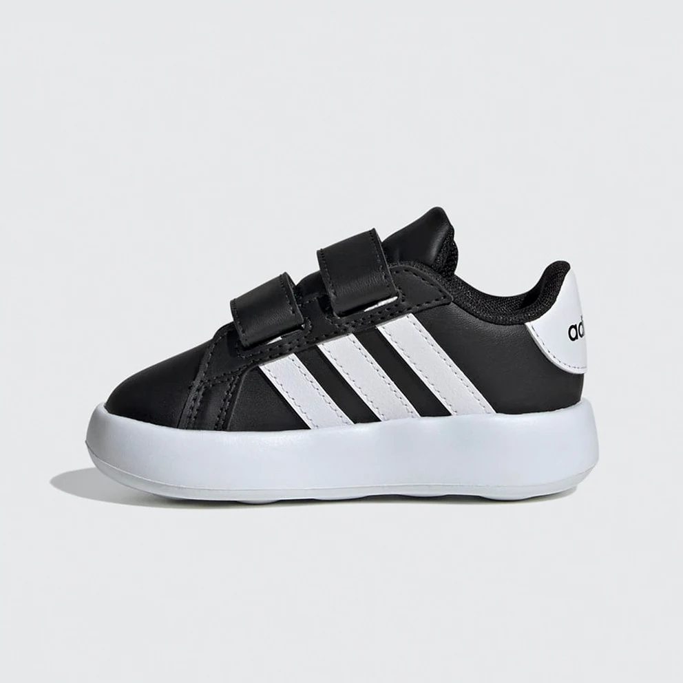 When the day is full of exciting adventures, no one has time to lose. These juniors' adidas Grand Court 2.0 baby shoes are quick to wear thanks to elastic laces and an upper strap for a secure fit. The black colorway makes you combine them with any outfit you find in your little one's wardrobe!