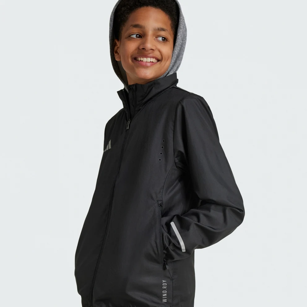 Great for outdoor activities, this juniors' adidas jacket shields against wind and light rain while remaining breathable. The minimal design works well with sports gear or casual outfits, depending on what you're up to. WIND.RDY technology guards against blustery weather while reflective details keep you visible when the daylight fades. This product is made with 100% recycled materials. By reusing materials that have already been created, adidas help to reduce waste and our reliance on finite resources and reduce the footprint of the products adidas make.
