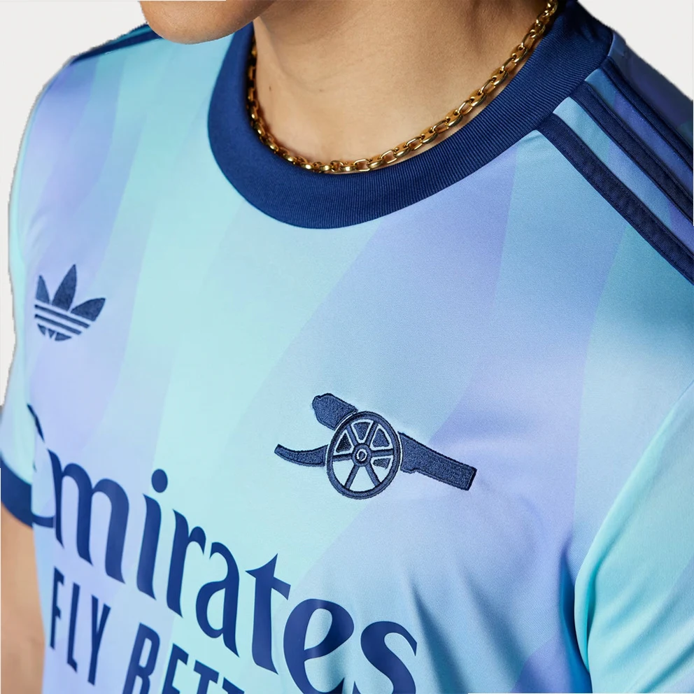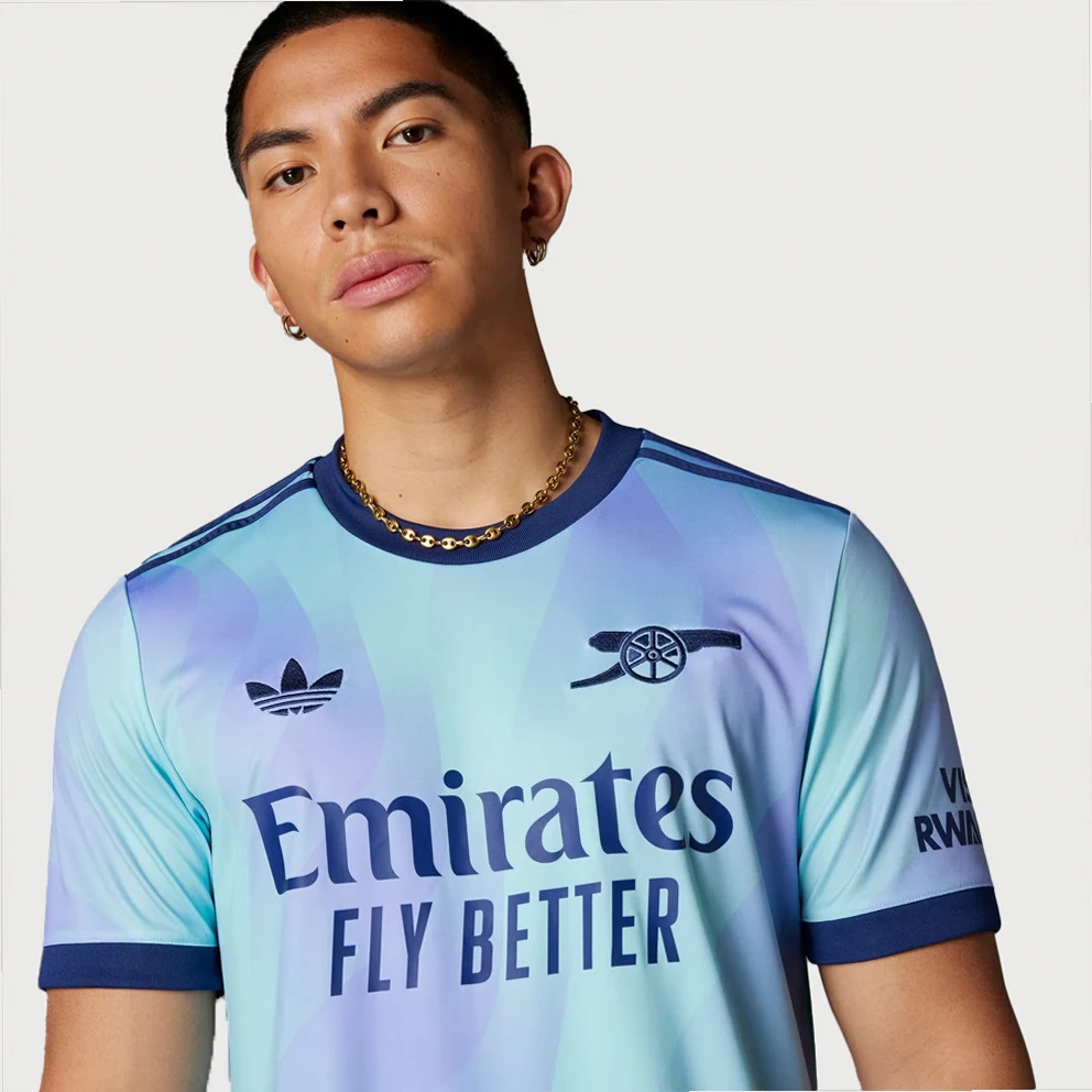 A fresh take on football heritage. Standing out in lilac and aqua, this Arsenal third jersey pairs a bold cannon badge with an iconic adidas Trefoil. The result? A vibrant look that will add colour to dressing rooms, away ends and post-game celebrations. Wherever you wear it, soft interlock fabric and moisture-managing AEROREADY ensure you feel ready for anything.This product is made with 100% recycled materials. By reusing materials that have already been created, adidas help to reduce waste and our reliance on finite resources and reduce the footprint of the products adidas make.