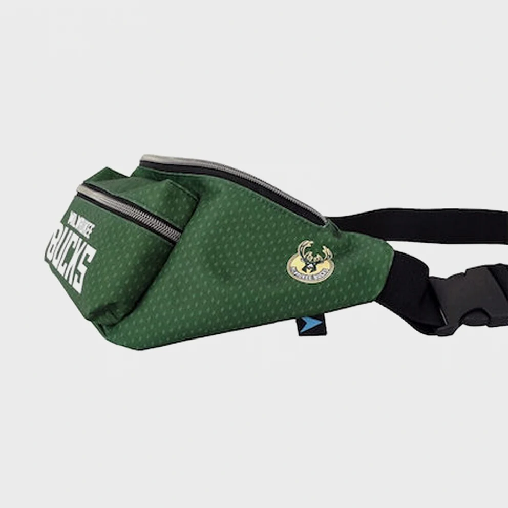 Waist bag with the emblem of your favorite NBA Bucks team. It has a central compartment and an extra front pocket for organization.
