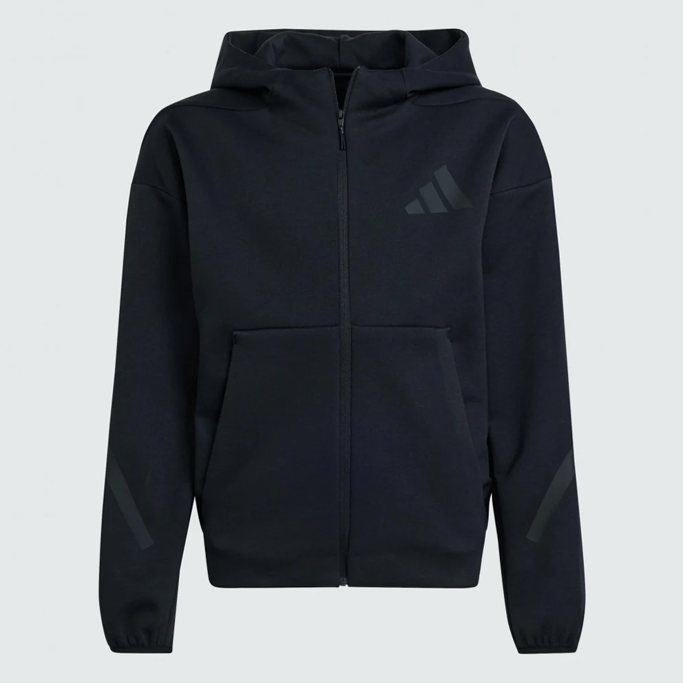 Even the coldest days can't stop you from enjoying the game. This juniors' adidas track jacket makes it easy to support your team no matter the weather thanks to cosy, three-layer adidas PRIMEKNIT fabric and a full-coverage hood. Matte rubber-print graphics inspired by field-of-play lines honour the spirit of sport and camaraderie.By choosing recycled, adidas are able to reuse materials that have already been created, which helps to reduce waste. Renewable materials choices will help us to remove our reliance on finite resources. Our products made with a blend of recycled and renewable materials feature at least 70% total of these materials.