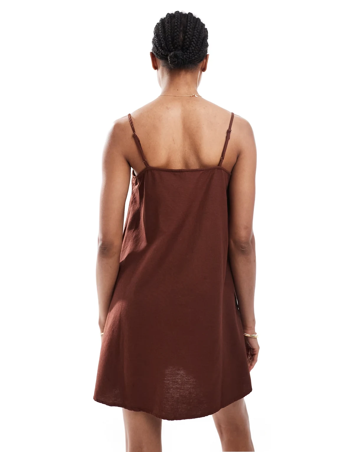 linen touch throw on mini dress in chocolate