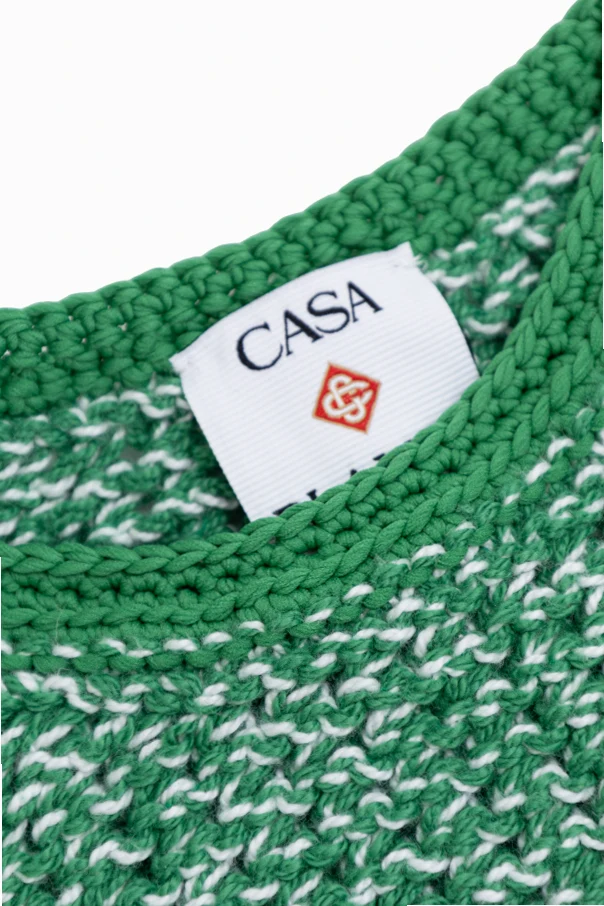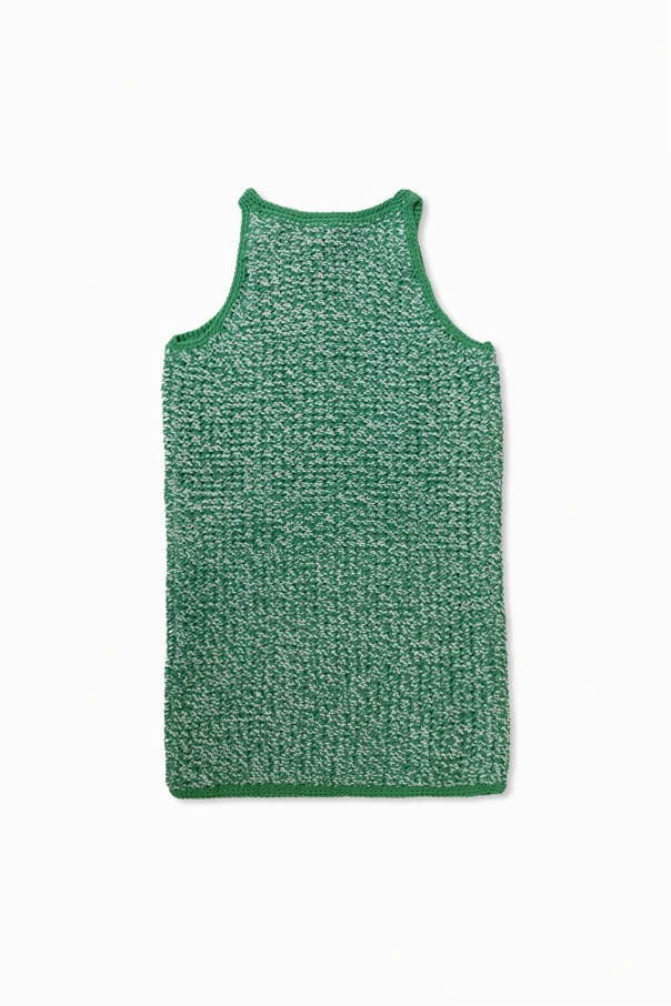 Inspired by the artistry of Casablanca Kids , this sleeveless dress embodies refined simplicity for young girls. Its subtly tapered silhouette is crafted in a sumptuous, thick knit—primarily soft cotton with a hint of stretch—showcasing a distinctive marl pattern in elegant green and white hues. The rounded neckline and wide straps provide both comfort and grace, while the prominent texture of the fabric underscores the dress’s artisanal allure.