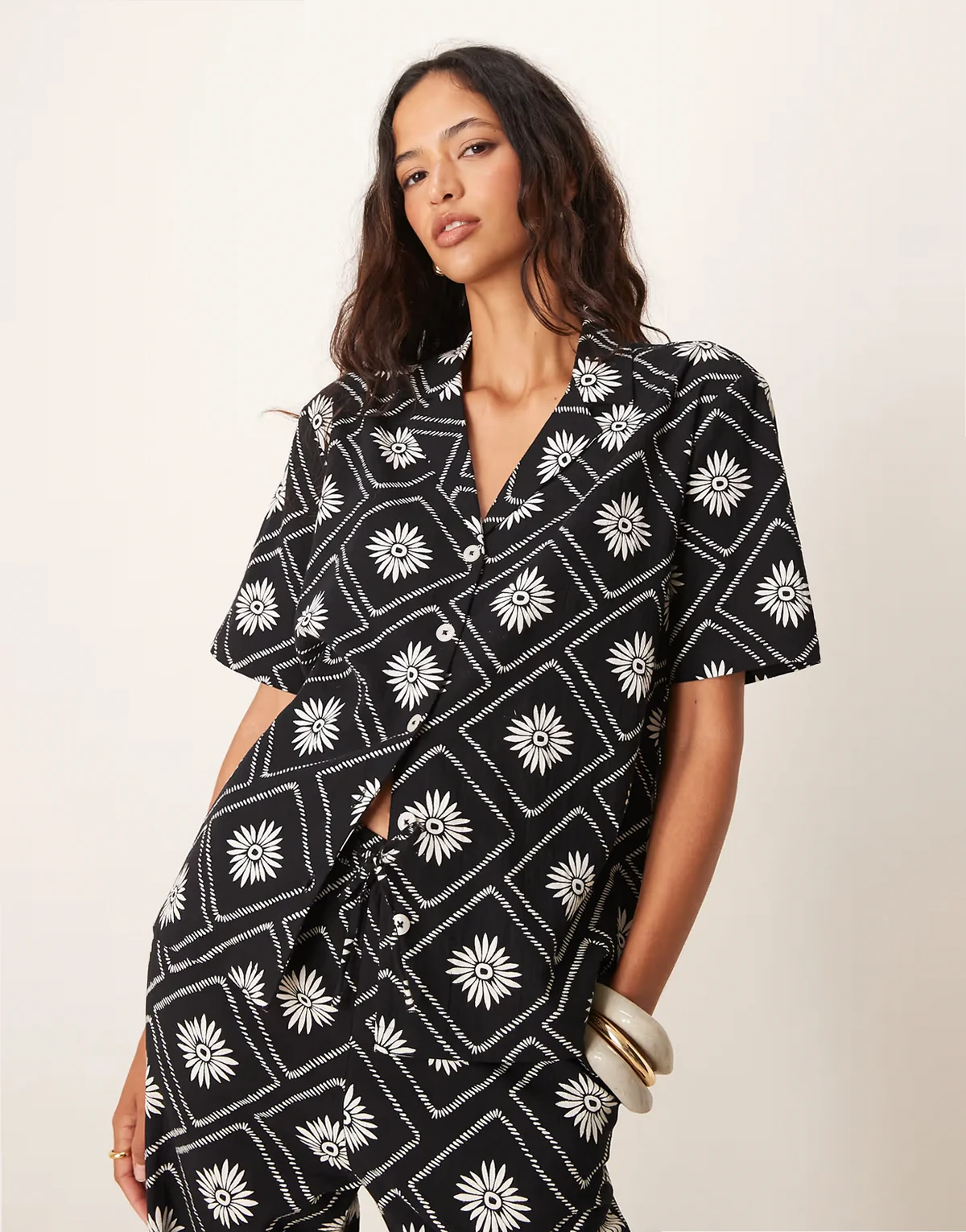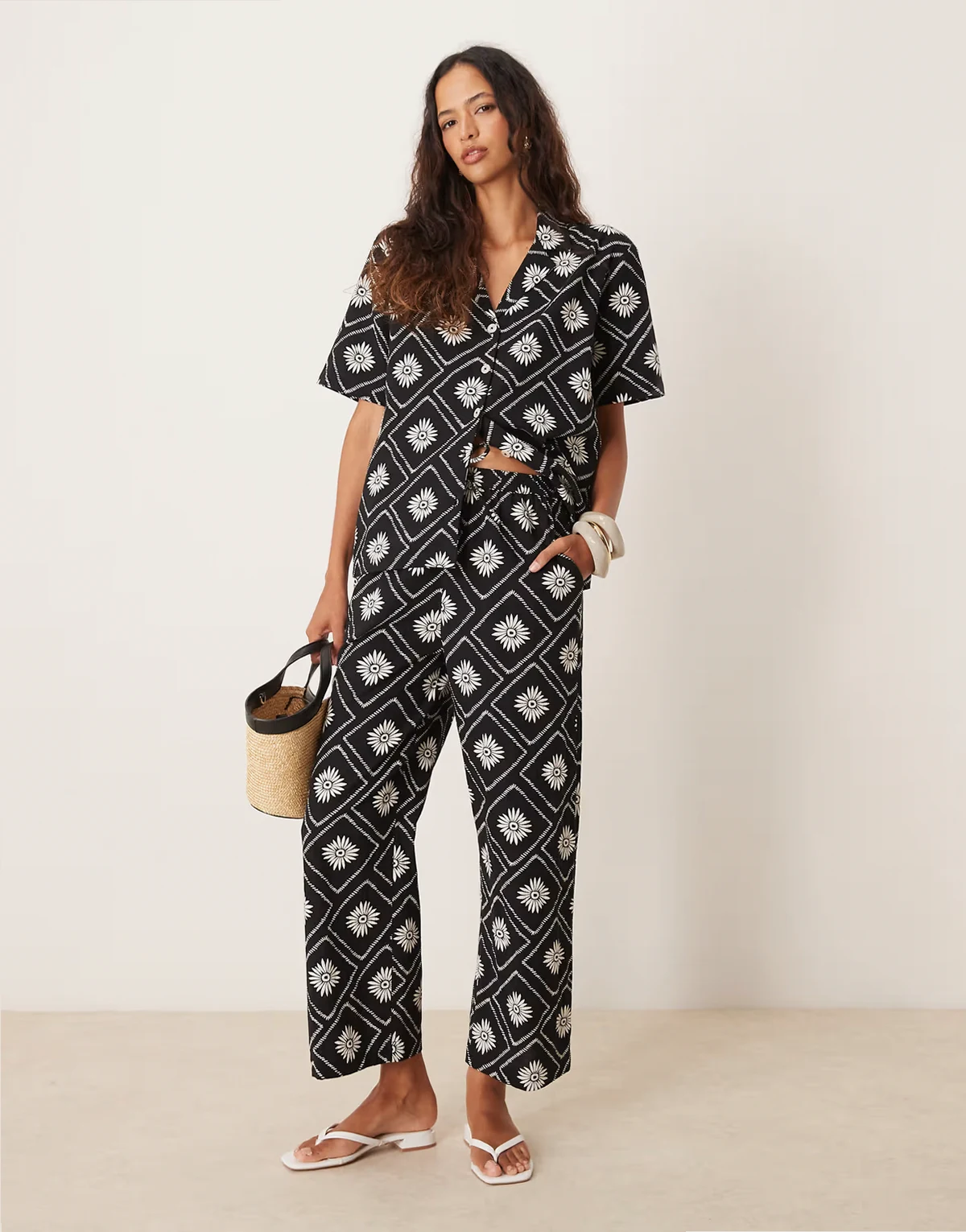 tile print beach set in black and white