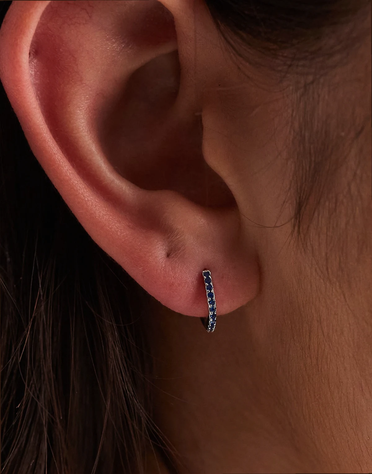 8mm blue crystal hoop earrings in silver