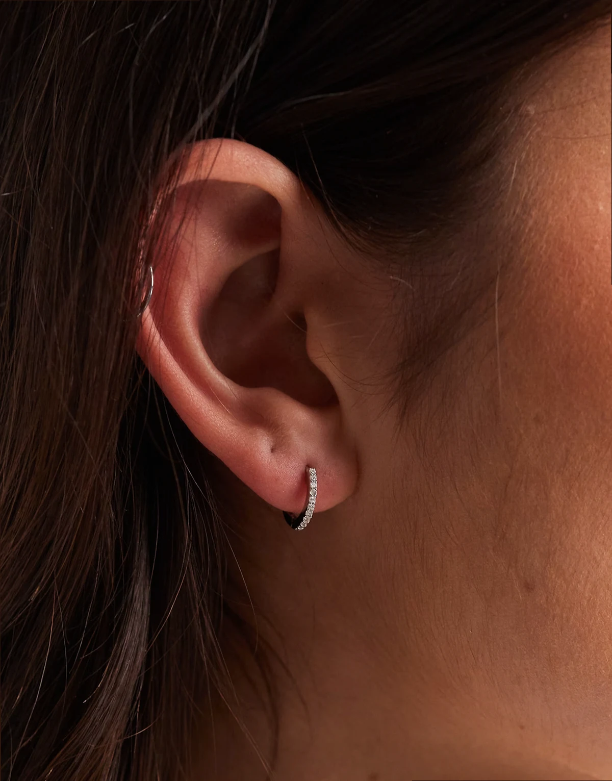 8mm clear crystal hoop earrings in silver