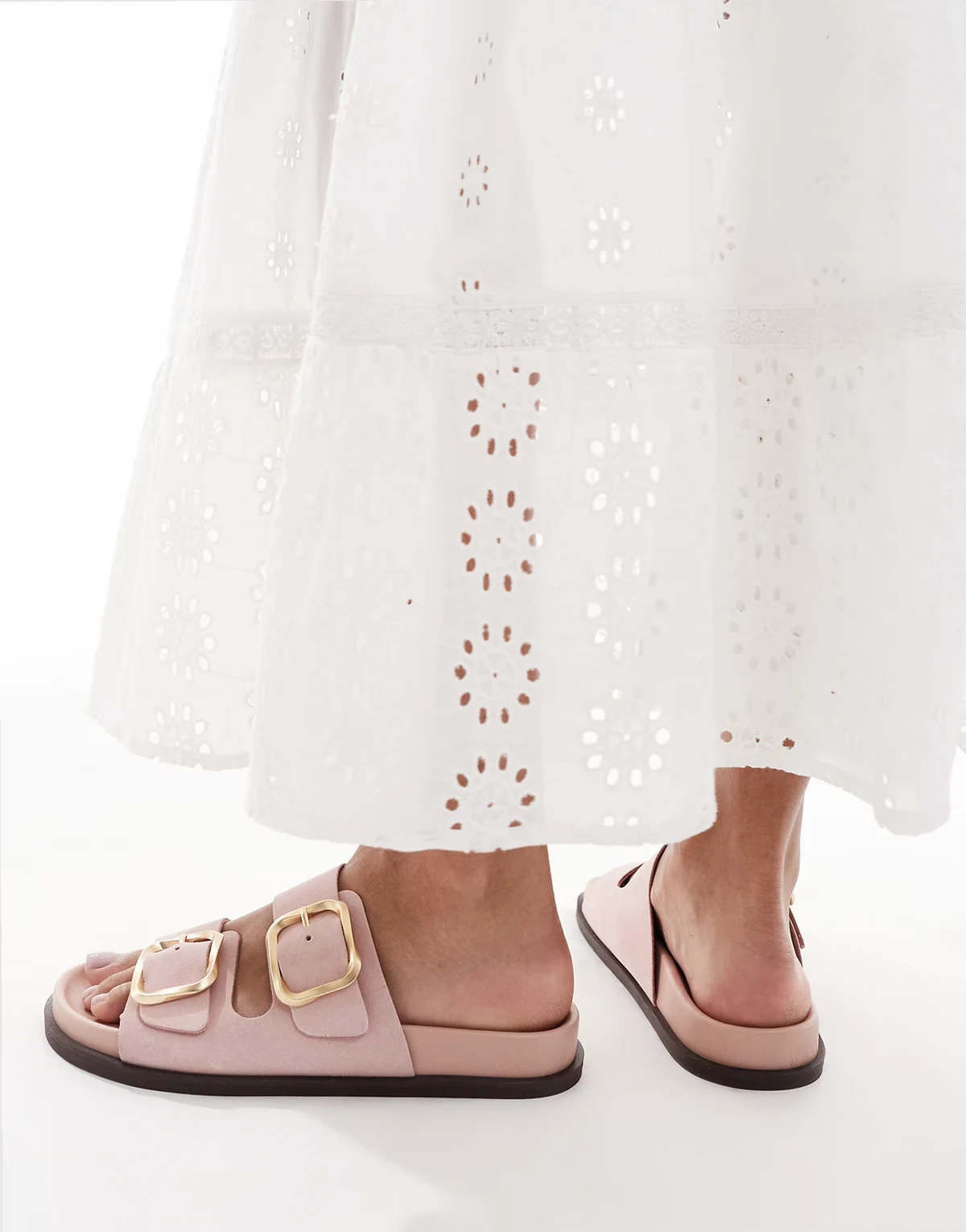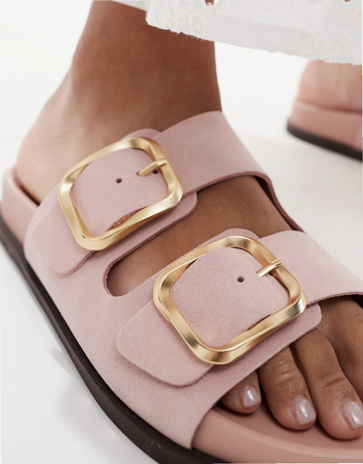 Tylee double buckle sandals in pink suede