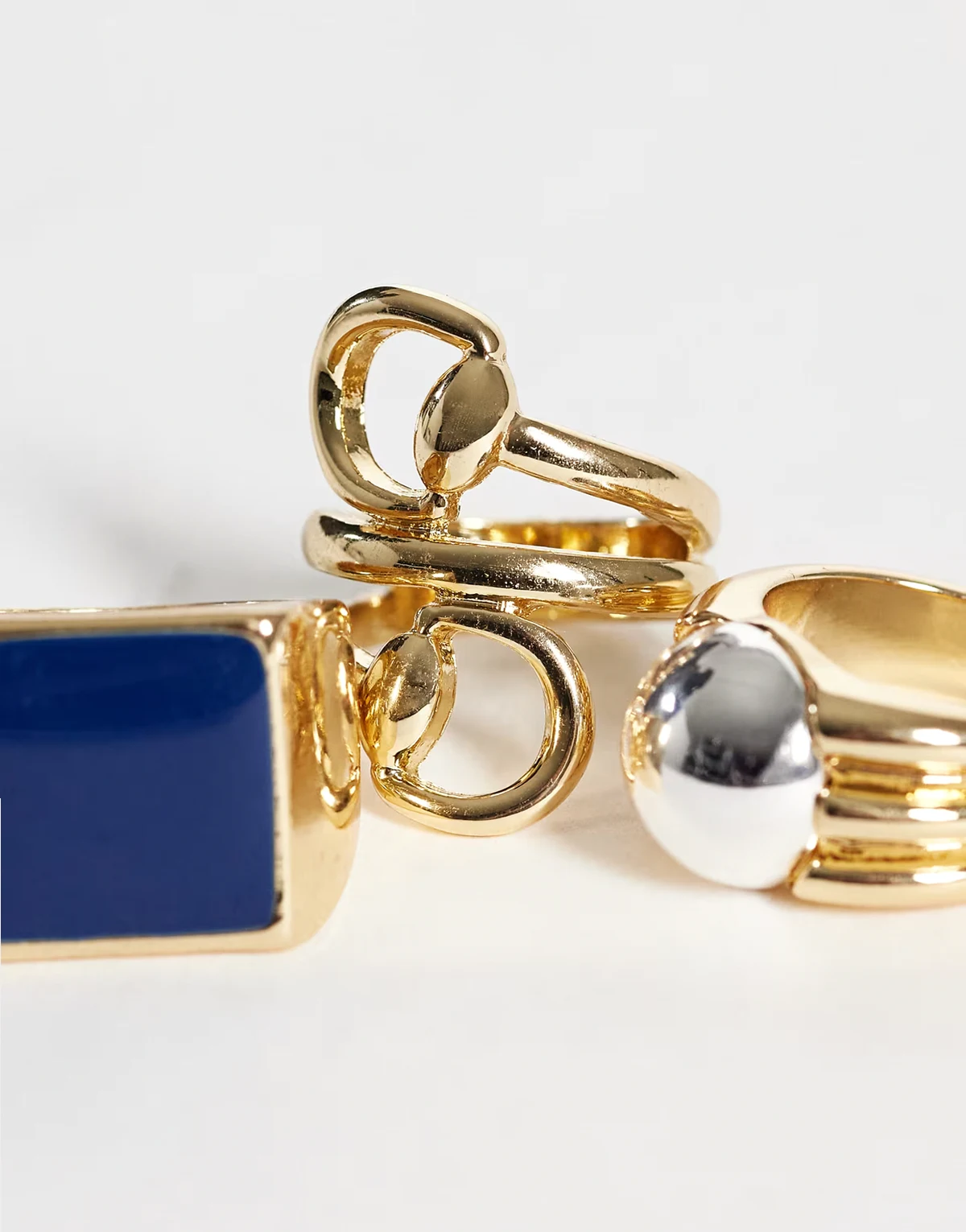 set of 3 statement rings in gold