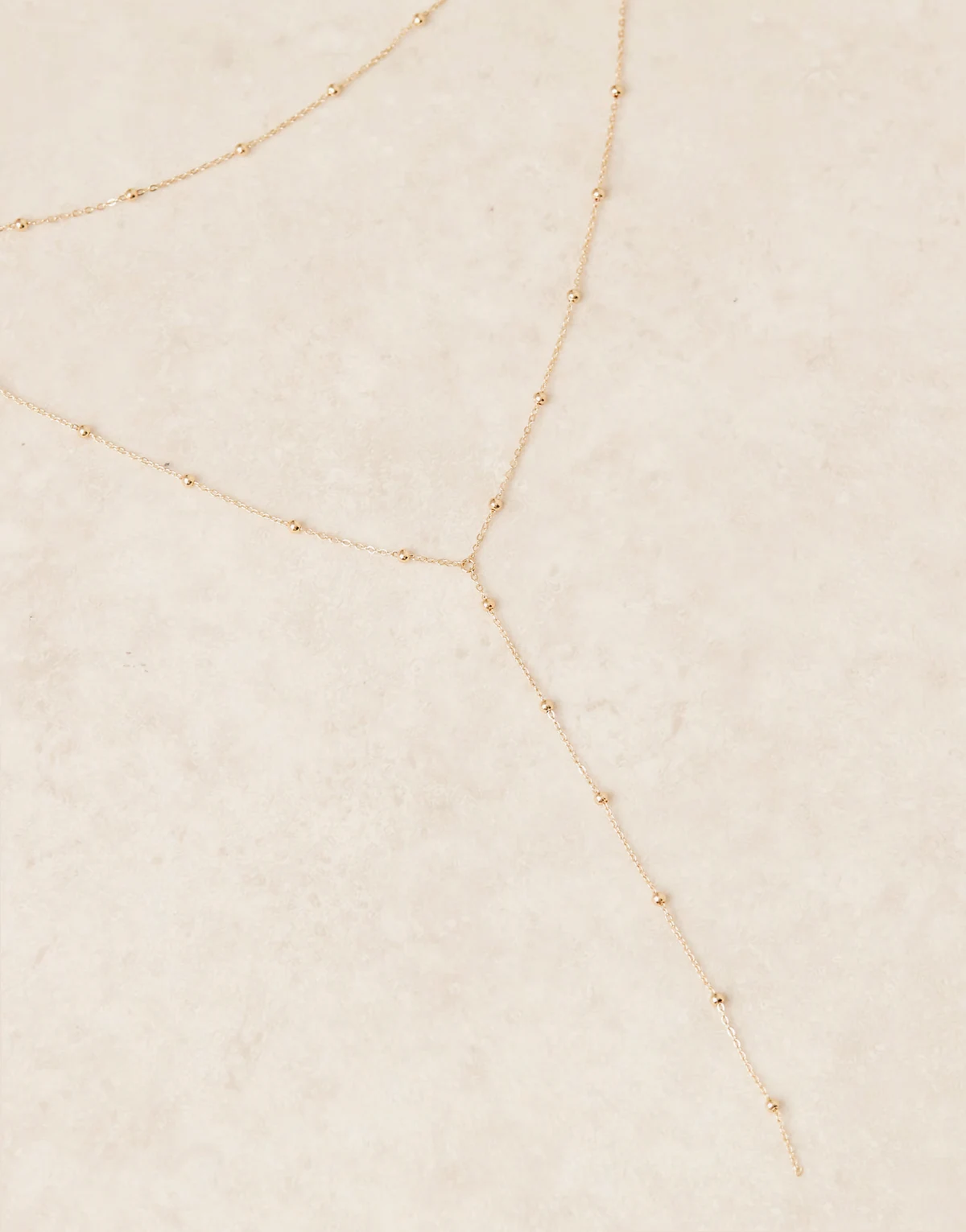 multilayered effect lariat necklace in gold