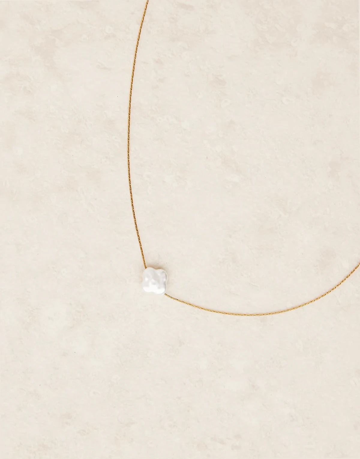 clover shaped faux pearl pendant necklace in 18kt gold plated stainless steel