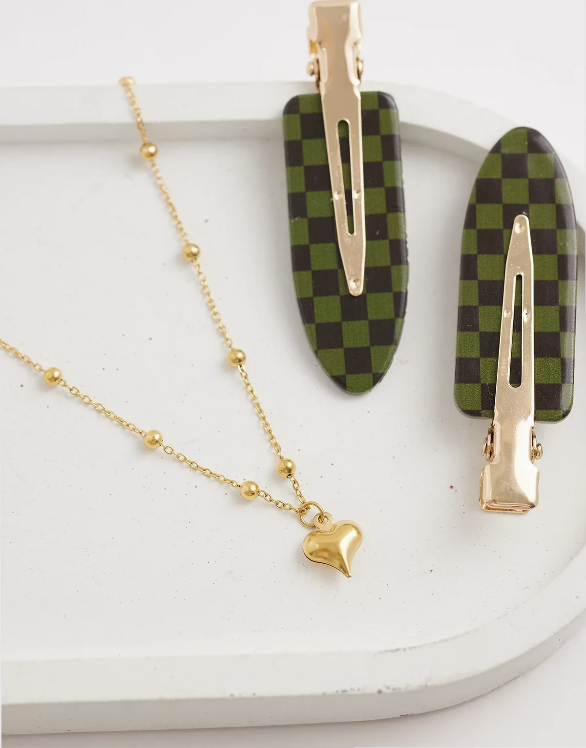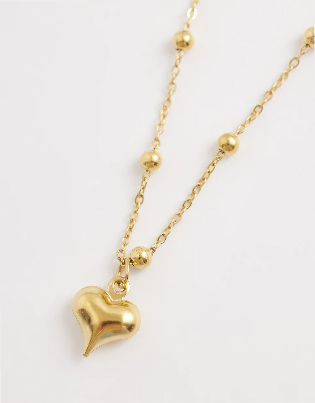 satellite chain heart pendant necklace in 18kt gold plated stainless steel