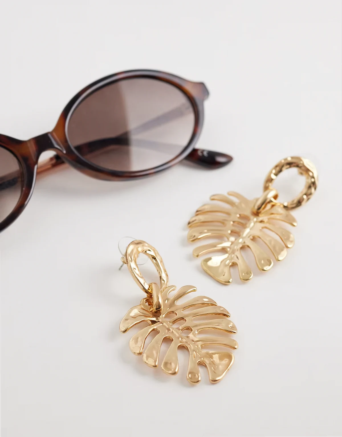 statement palm leaf earrings in gold