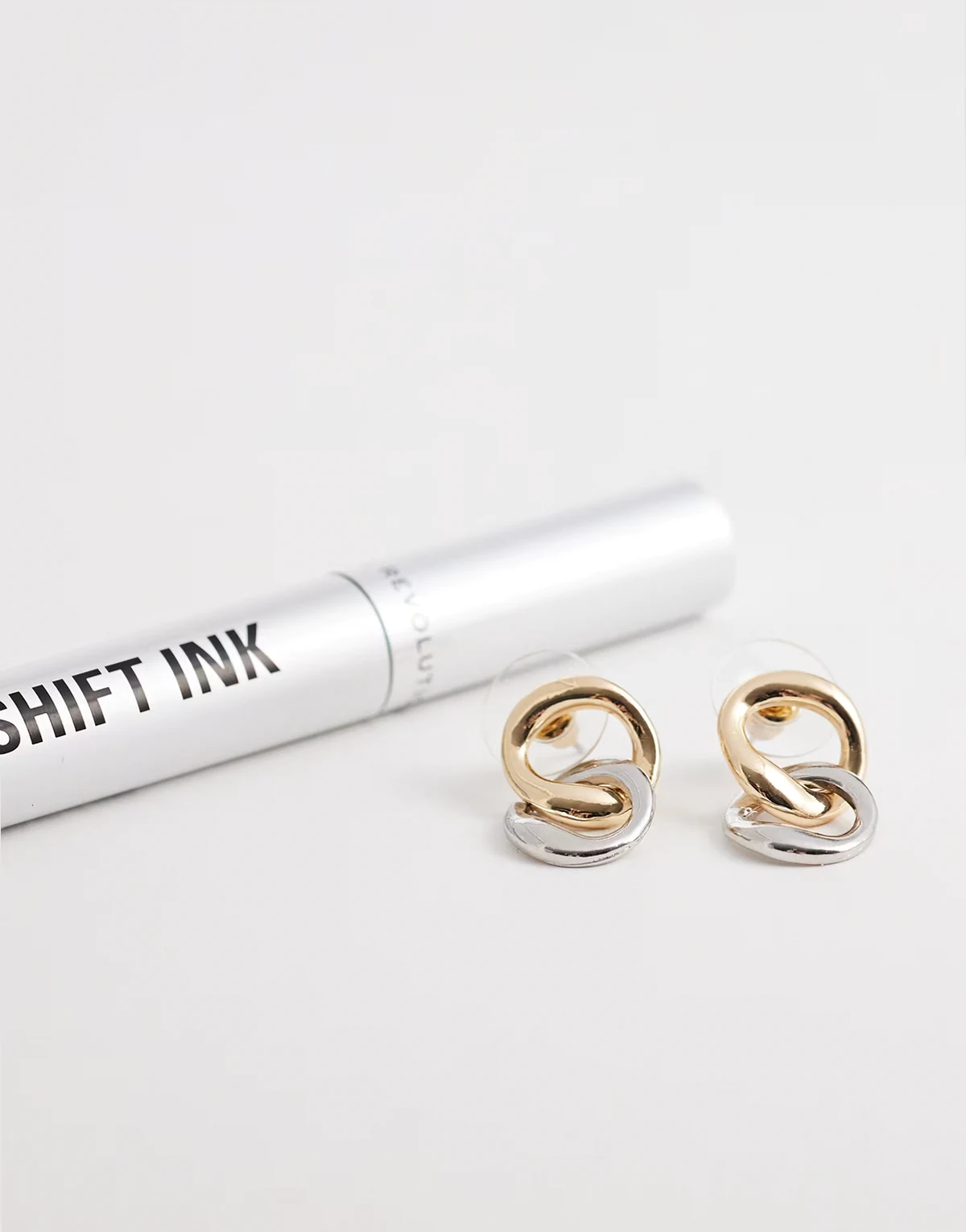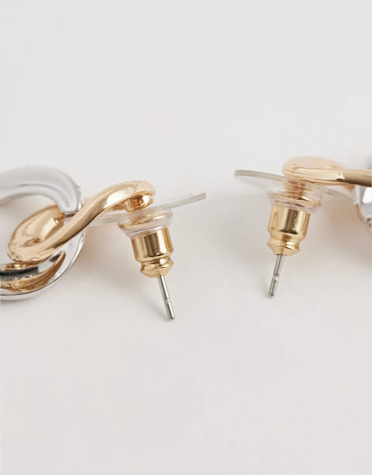 mixed metal linked hoop stud earrings in gold and silver