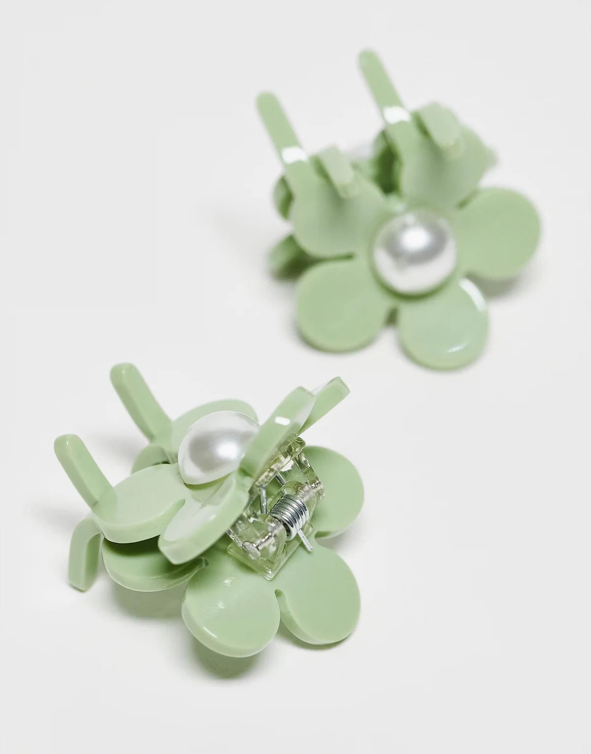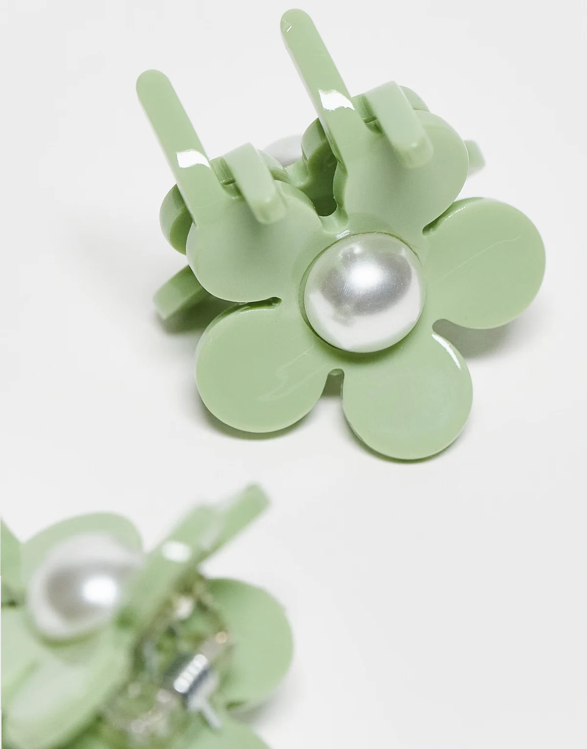 Eva flower pearly mini hair clips in green