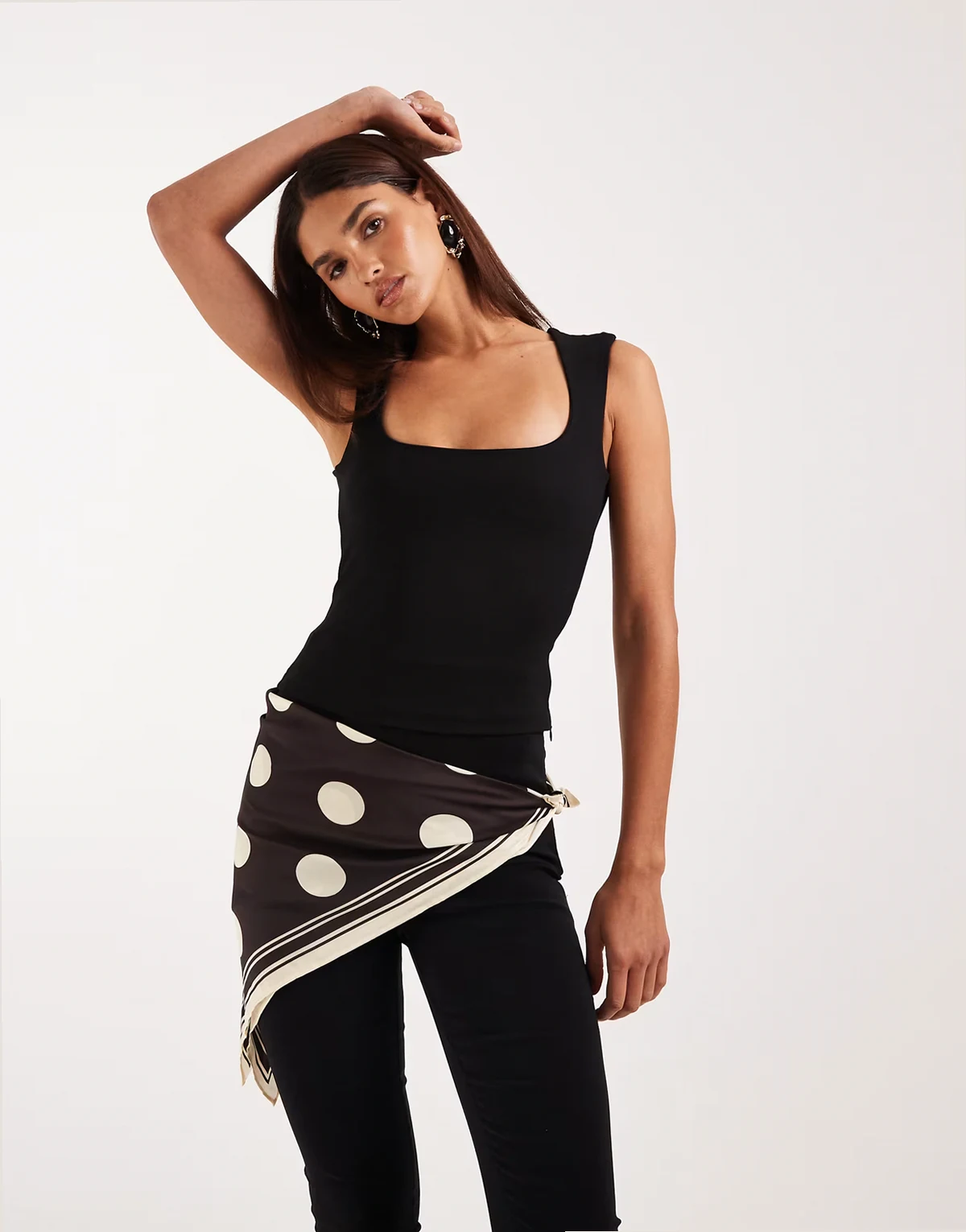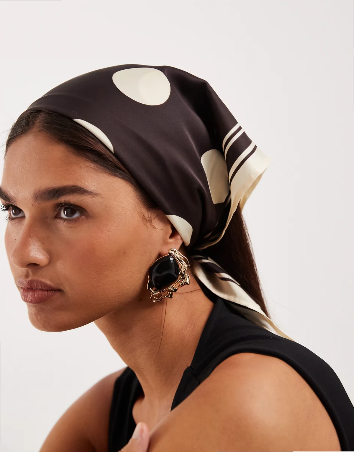 headscarf in chocolate polka-dot print
